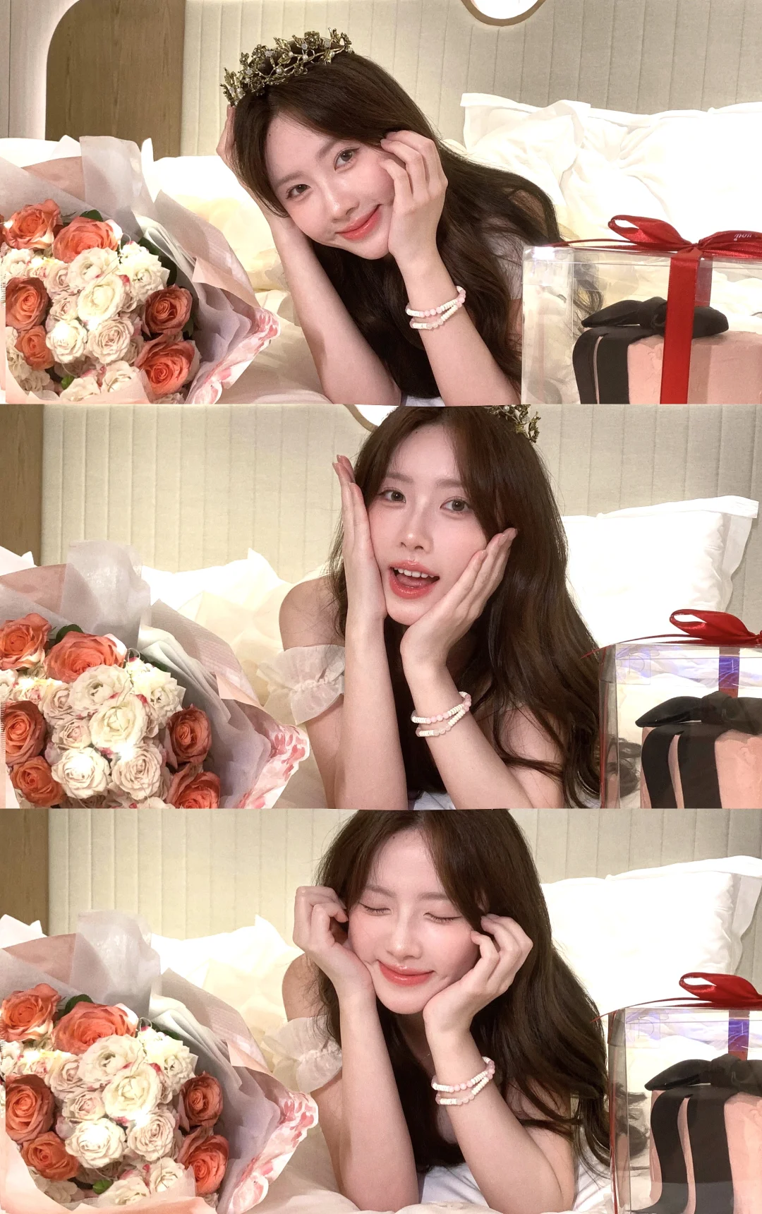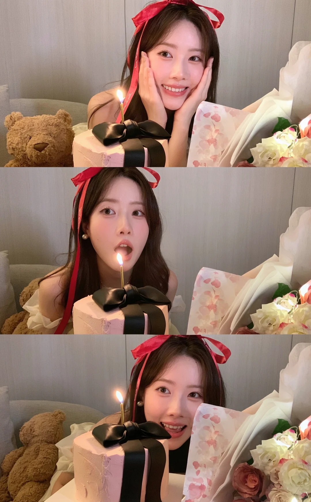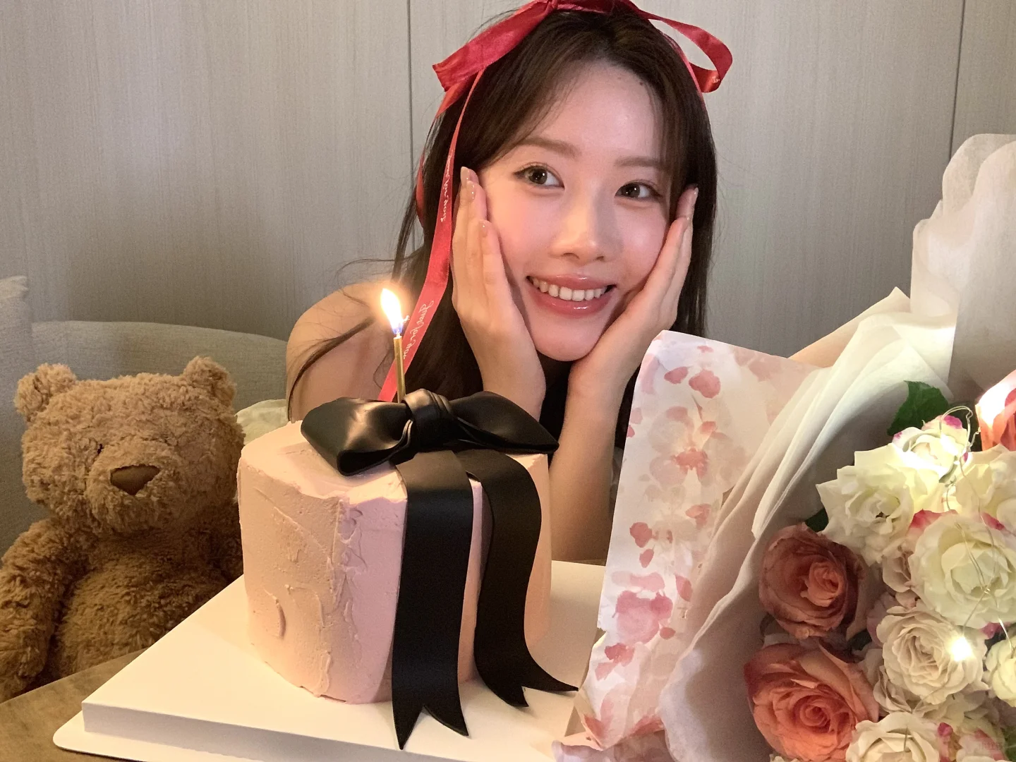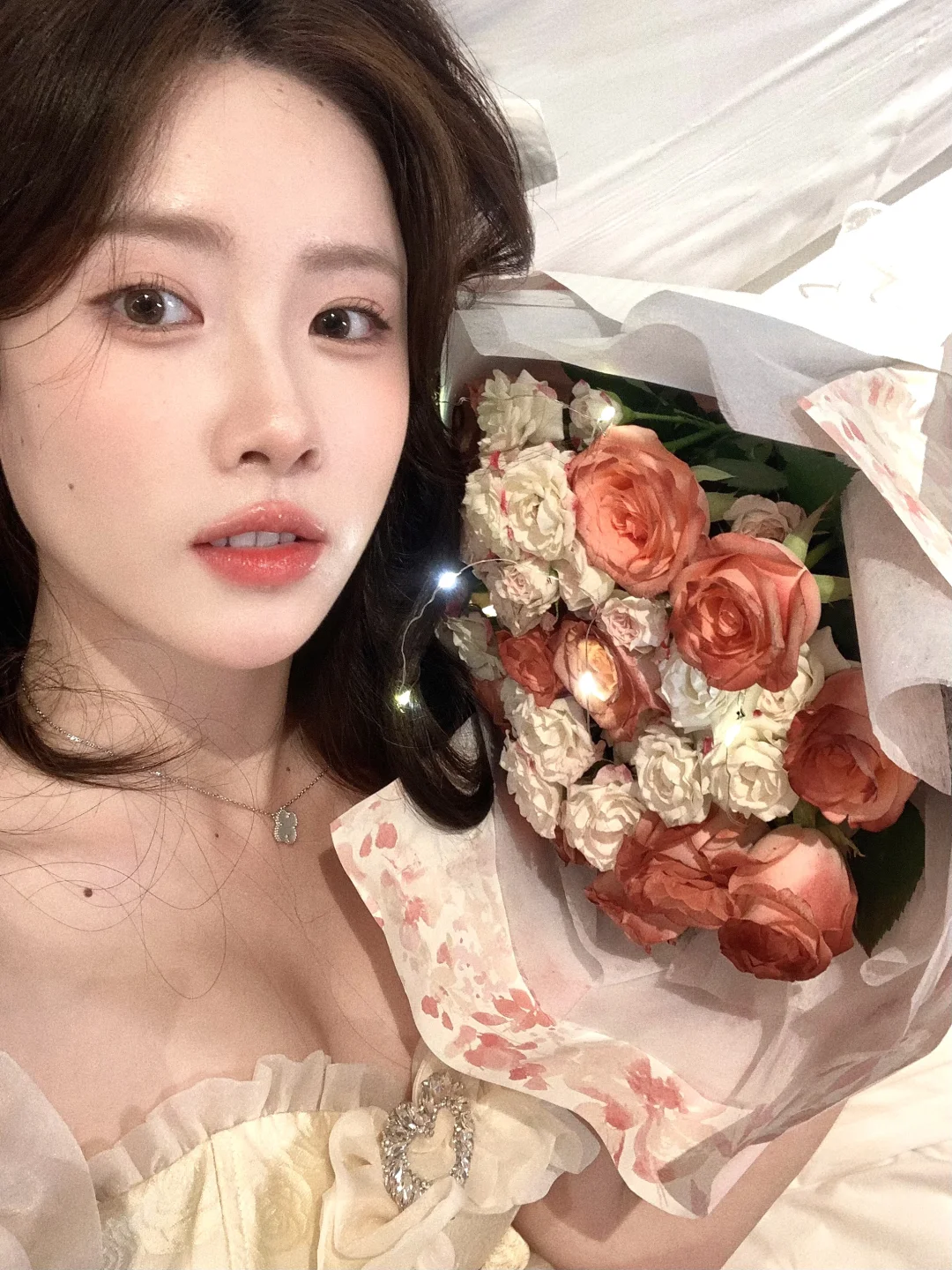 生日拍照姿势🈶️! 可以准备一束花 在被单上和花花互动 蛋糕上的丝带也是不错的道具哦! 照片上xs max拍的~