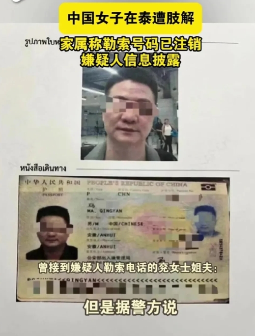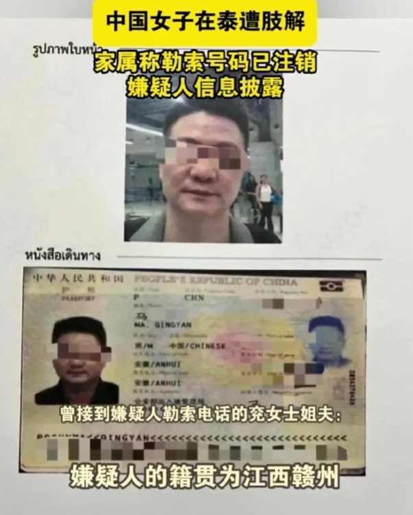 泰国被害兖女士家属发声,兖女士尸骸经过DNA检测7月14日会出结果,嫌疑人勒索电话号码已经注销,目前警方己经确认嫌疑人护照出生地显示安徽,但是籍贯确是江西赣州,两人是通过社交媒体聊天所认识,然后7月1日相约去的泰国,泰国警方在嫌疑人马某某所住酒店和驾驶车辆内也确实发现大量血迹, 目前马某某已乘飞机从香港转去澳门 期间使用受害人银行卡在澳门进行消费 女孩父亲10号去的泰国一直在那边等待后续调查结果,目前家属也在女孩常住地深圳龙华报警,由于缺少材料无法立案,当地民警工作人员已经告知立案所需材料,法网恢恢疏而不漏,嫌疑人最终会为自己的行为,接受法律的审判。