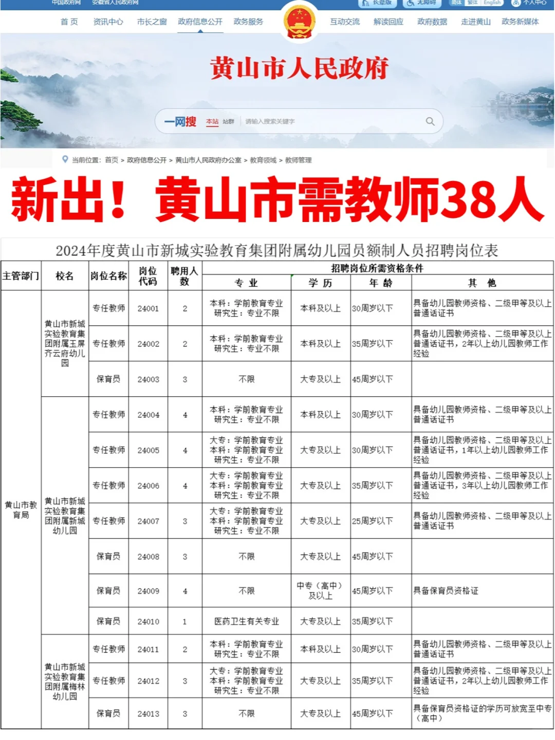 新出!黄山需幼儿教师38人