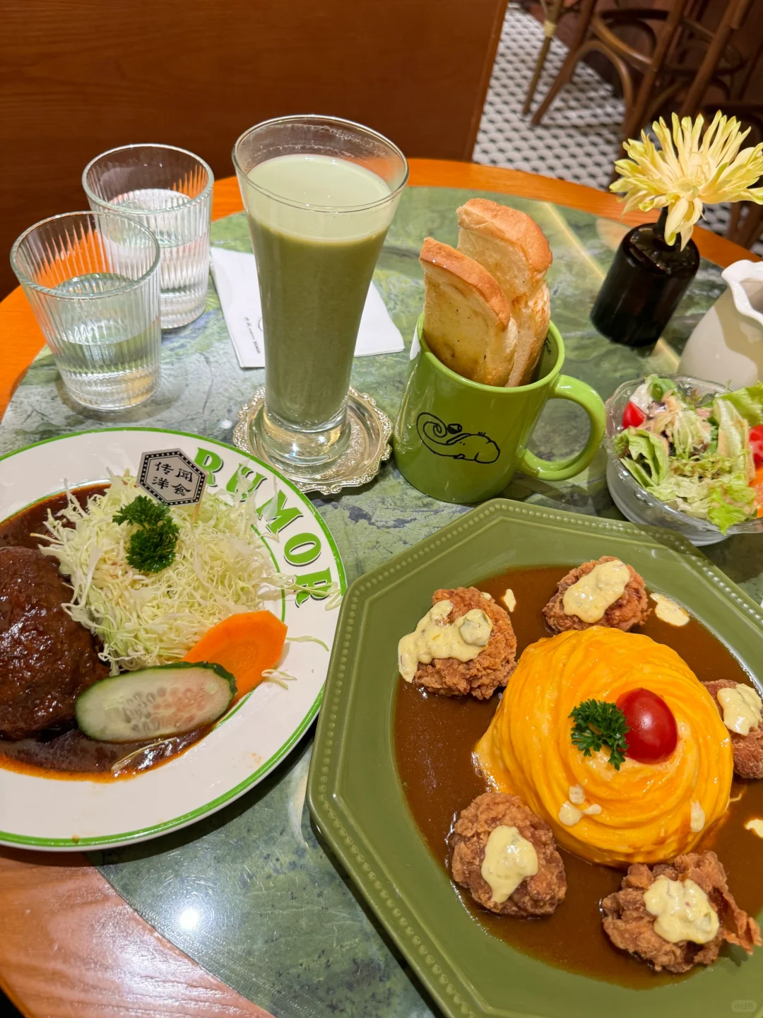 招牌日式和牛汉堡排和炸鸡蛋包饭太绝了!