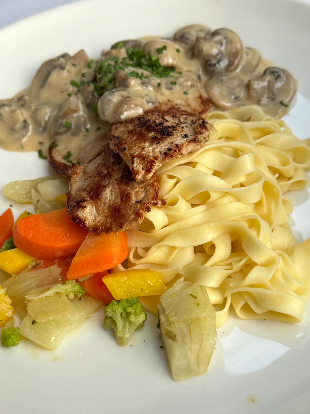 4. 炸猪排蘑菇面没有酱 猪肉也很硬!