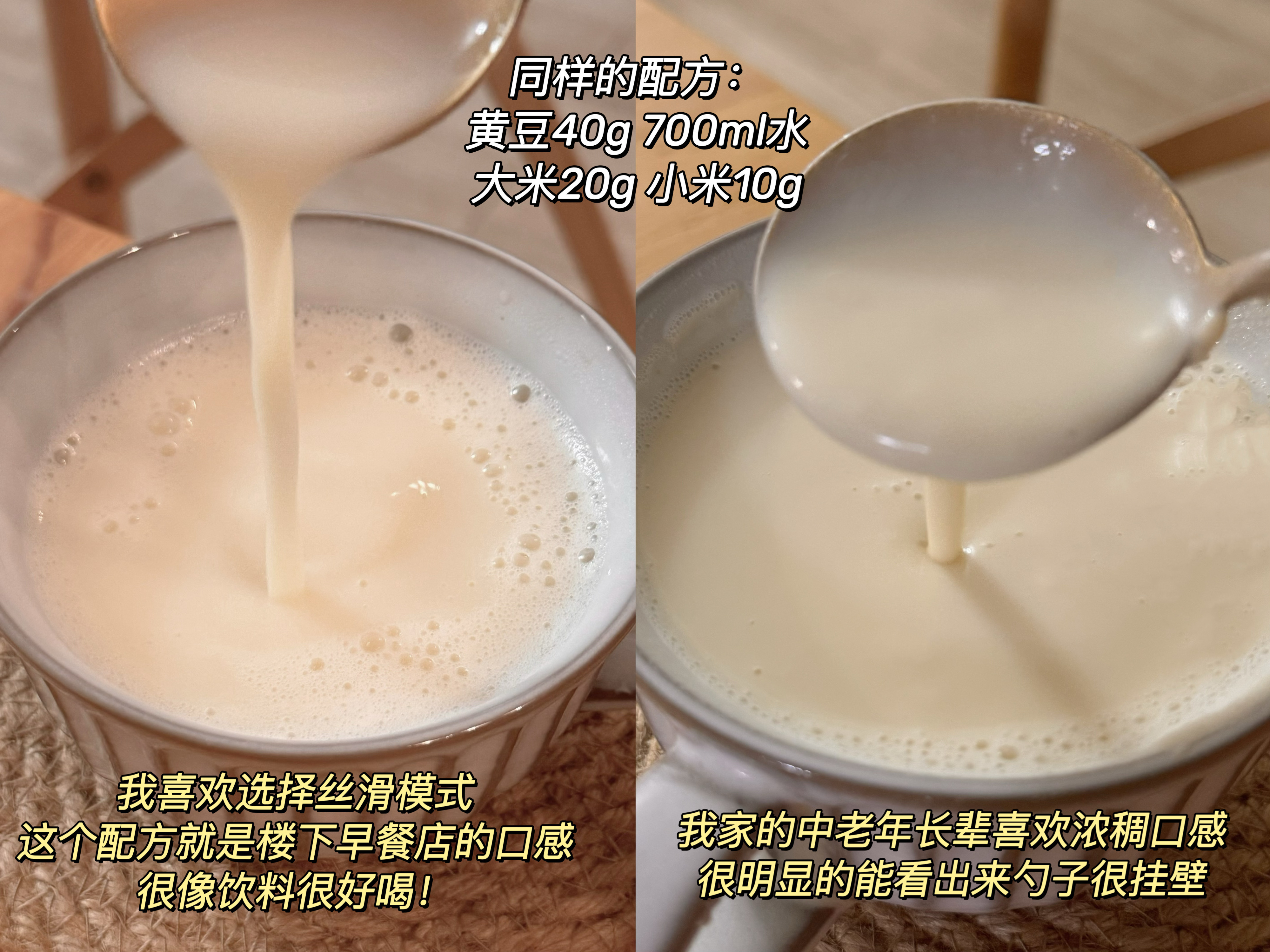 选择丝滑模式,做绿豆冰或者豆浆,那种口感就是健康版的楼下早餐店卖的口感!我真的无敌喜欢这种饮料口感!!丝滑到不敢相信!我也尝过我妈喜欢的浓稠口感,不是那种喇嗓子的浓稠,完全没有颗粒感没有渣但是更绵密会挂壁一样的口感!我妈她超爱!