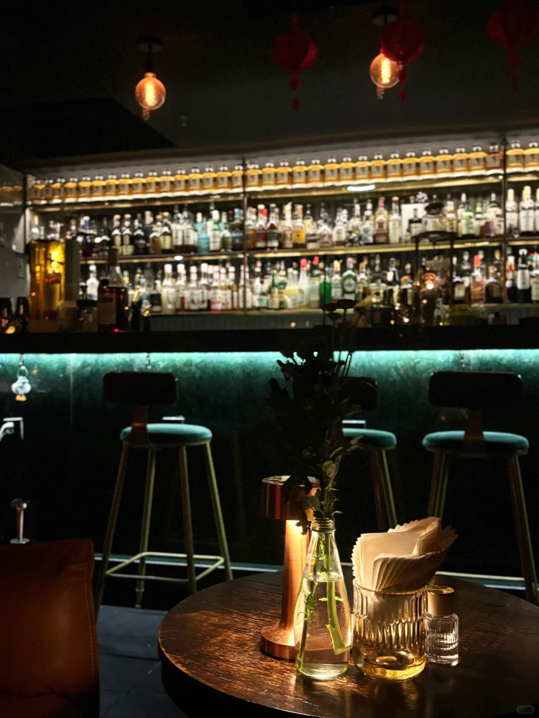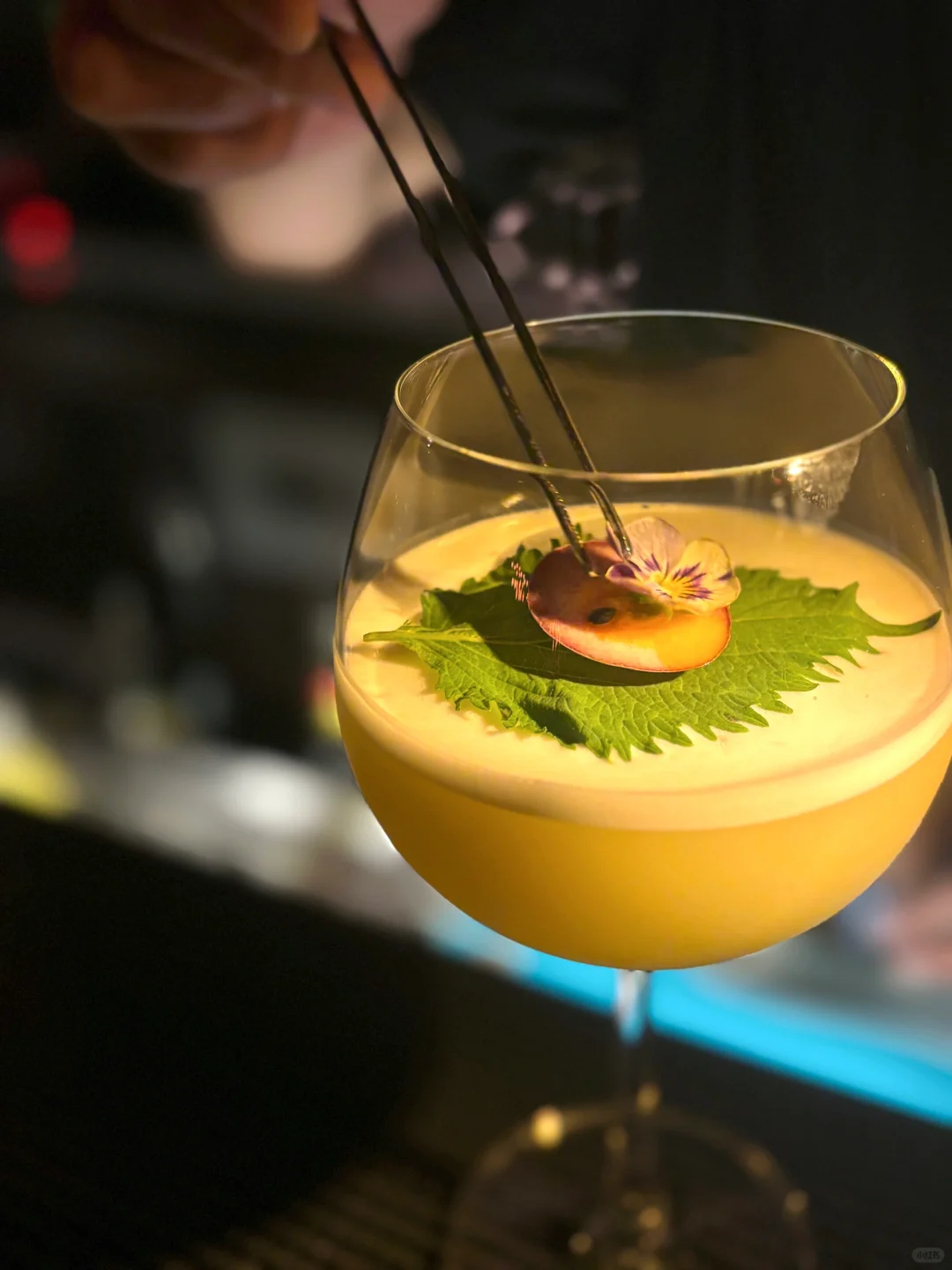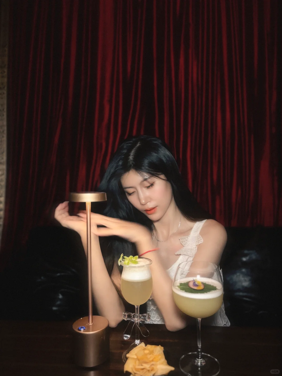 这家So Lang Bar,正如其名,又典雅又浪漫🌹 装修是古典风,很有氛围感,店内卡座真皮沙发配红色幕布,带了点好莱坞的调调😍😍,还有大大的落地窗,灯光昏暗,音乐🎵也很优雅十分有情调。 店外也是可以坐的,🉑吹吹夏日的晚风~ 🍹他家酒调的极好,每一款都很经典满满细节,融入果蔬🥒和花草的芳香🌸,口感也是酸酸甜甜超有层次,绝对宝藏调酒师了🍸