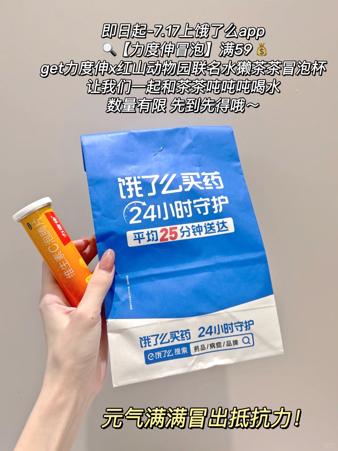 即日起-7.17,上饿了么app🔍【力度伸冒泡】,满59💰get力度伸x红山动物园联名水獭茶茶冒泡杯。让我们一起和茶茶吨吨吨喝水,元气满满冒出抵抗力!数量有限 先到先得哦~