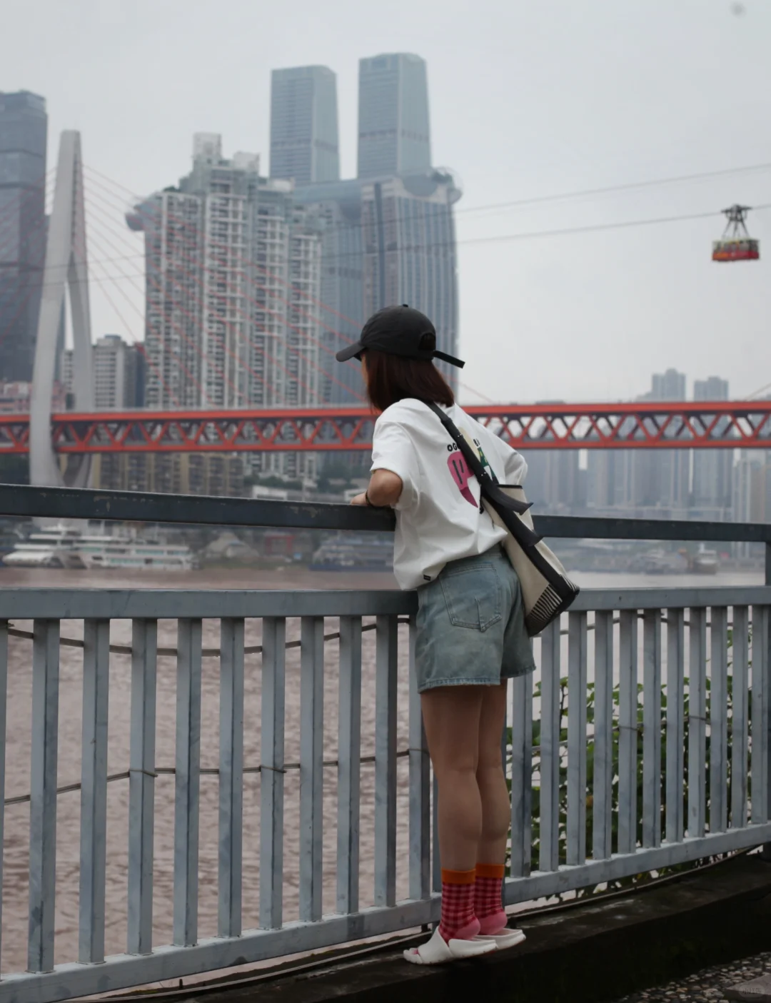 没有拖鞋的夏天是不完整的。 要是一个月前谁跟我说我会穿着拖鞋满大街走,我大抵会觉得这个人疯了。然而当我真这么做之后,瞬间就明白为什么年轻人出门都爱穿拖鞋,真的是太!舒!服!了! 当然也不是什么拖鞋都能外穿,至少要颜值高还防滑。这个防滑必须是真防滑,脆皮曾老师可经不起摔;这款拖鞋众多颜色中我最爱万能的白色,休闲百搭,再来双亮色袜子,我就是整条街最靓的崽[偷笑R] 暴雨之后长江水位暴涨,随处可见兴致勃勃看涨水的重庆土著。就这一点,重庆人民的心态在全国必须是遥遥领先!
