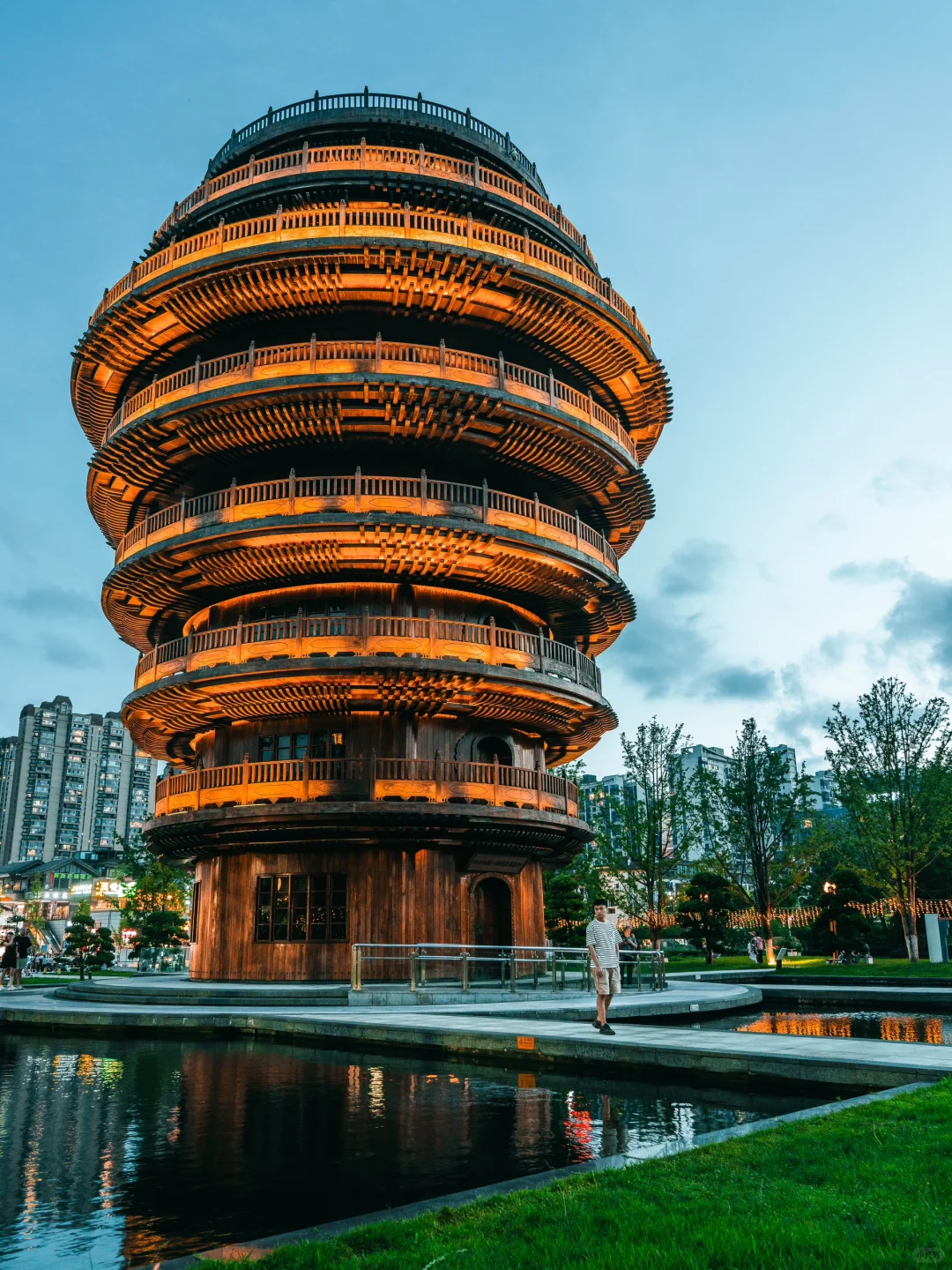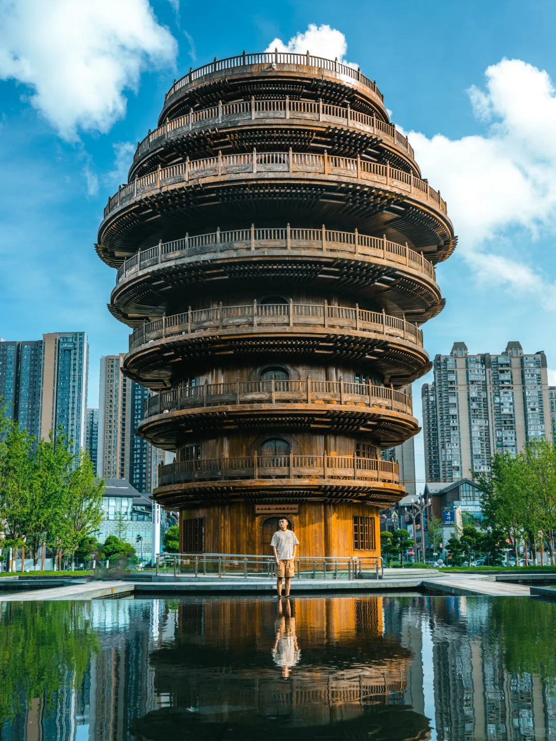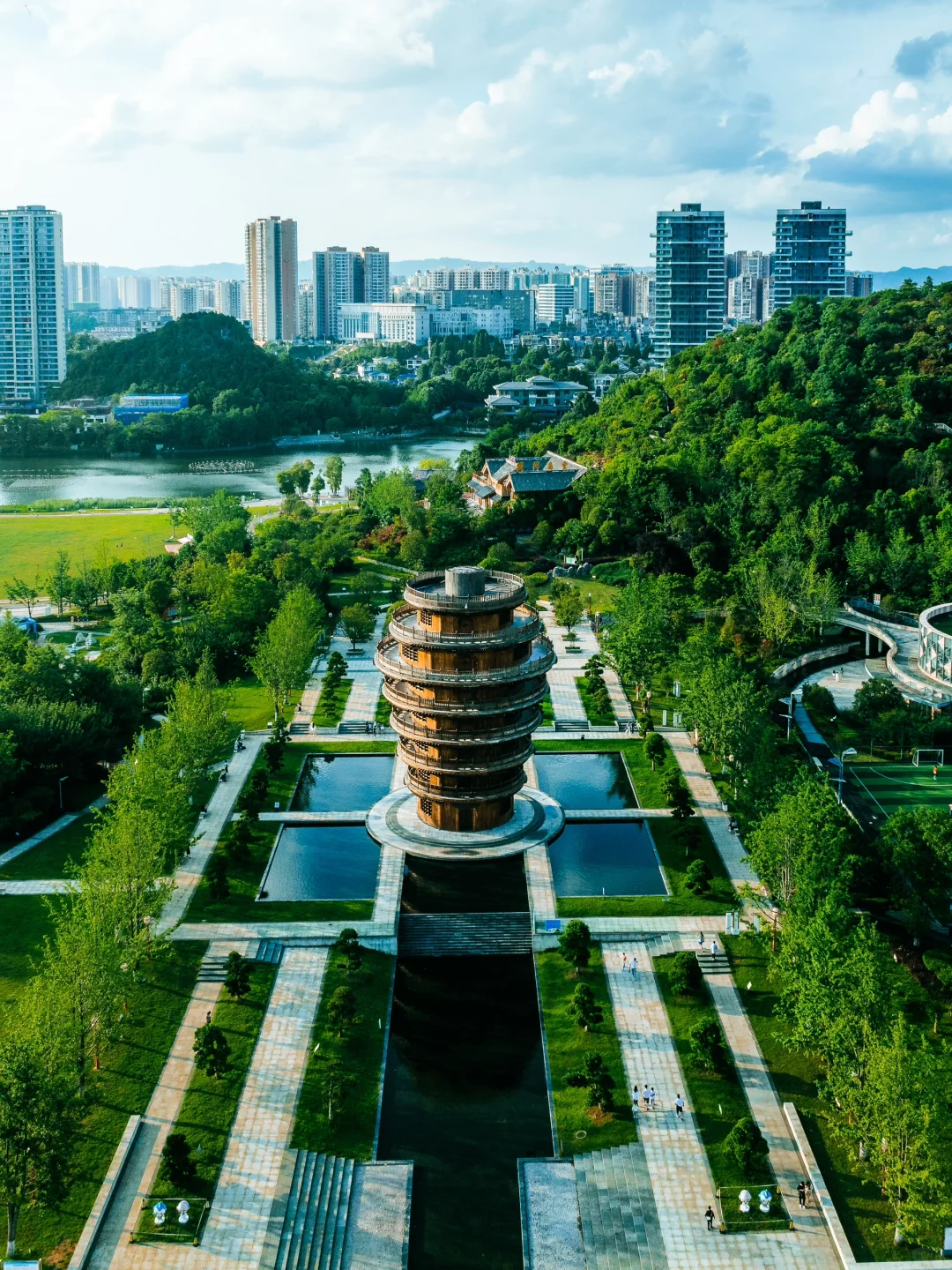 🌟泉湖公园泉湖公园在贵阳市白云区,云楼是这里的标志性建筑,共七层,寓意七级浮屠,浮屠是前世,云楼是今生,建筑外形主体木质结构,造型独特精巧。下方又有水作倒影,怎么拍都出片。这个观景台的位置在泉湖公园山上,走到观景台只需10分钟。西普陀寺就在公园边上,烧香祈福拍照都是不错的选择。