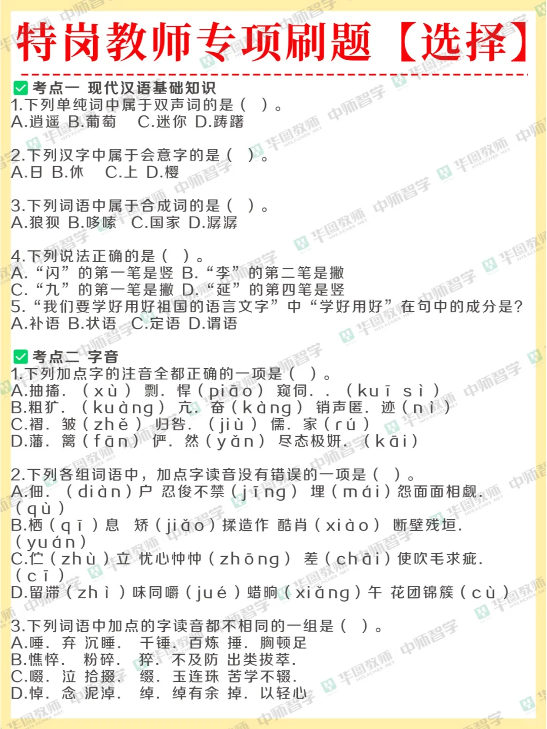 教综+各个学科的刷题汇总准时到达!