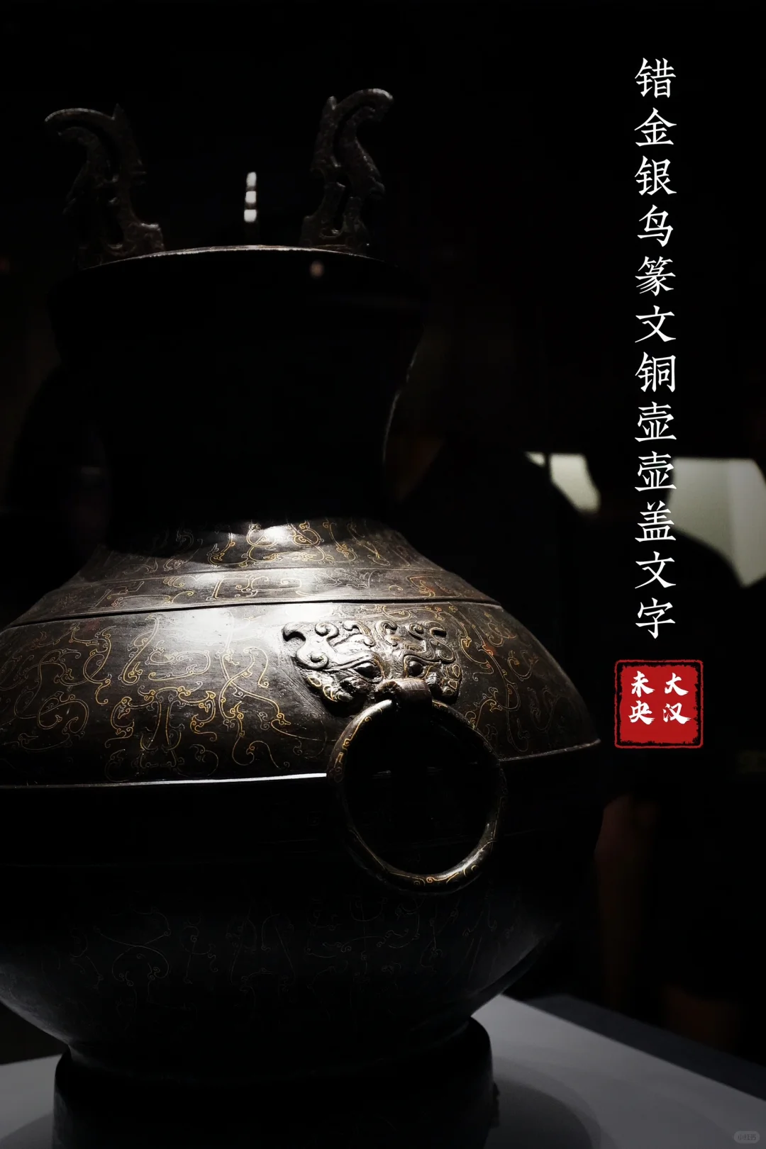 精美的错金银工艺,壶身上的鸟篆文字和动物纹带极具艺术价值。