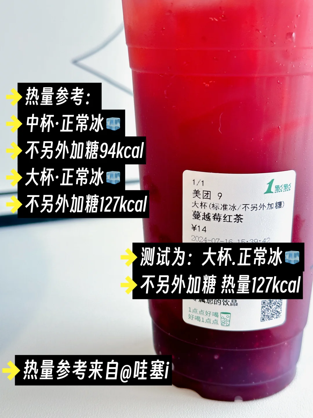 大杯·正常冰🧊不另外加糖,热量127kcal✔