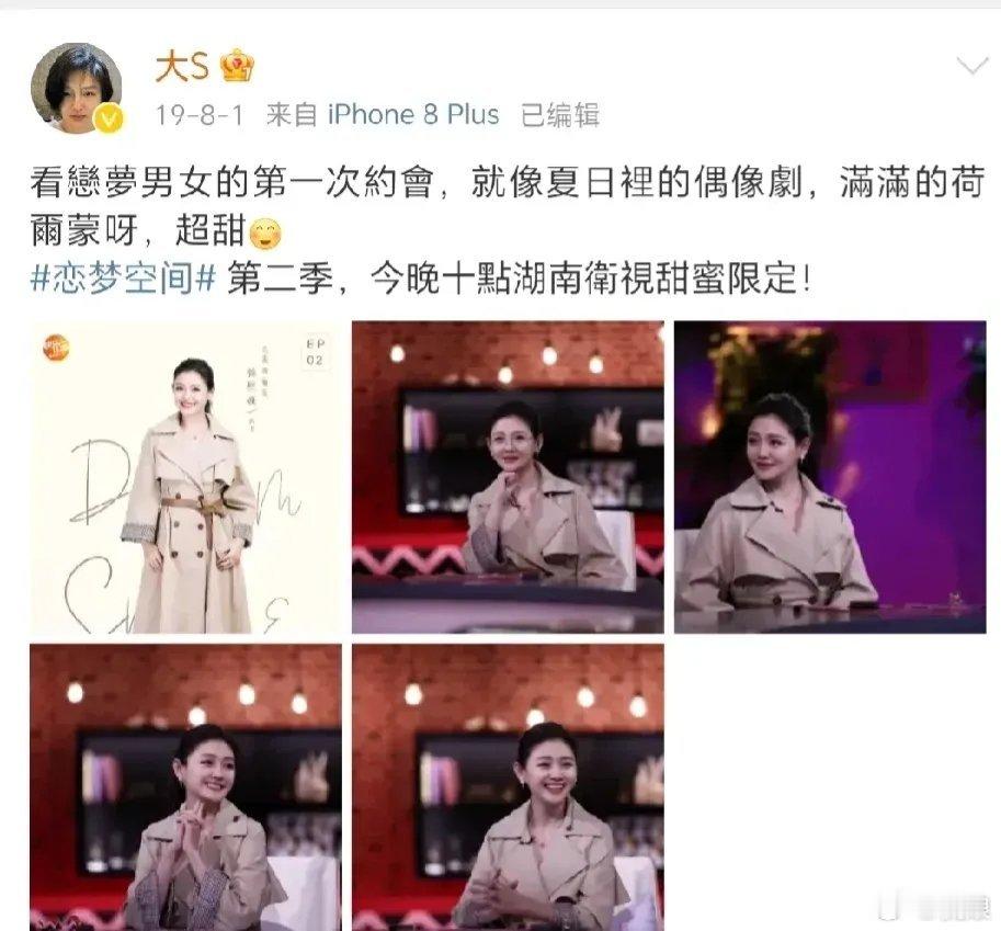 那段时间,大S正好参加湖南卫视《恋梦空间》的观察员。我想她大概是看到别人谈恋爱,触景伤怀,回忆自己逝去的青春吧。