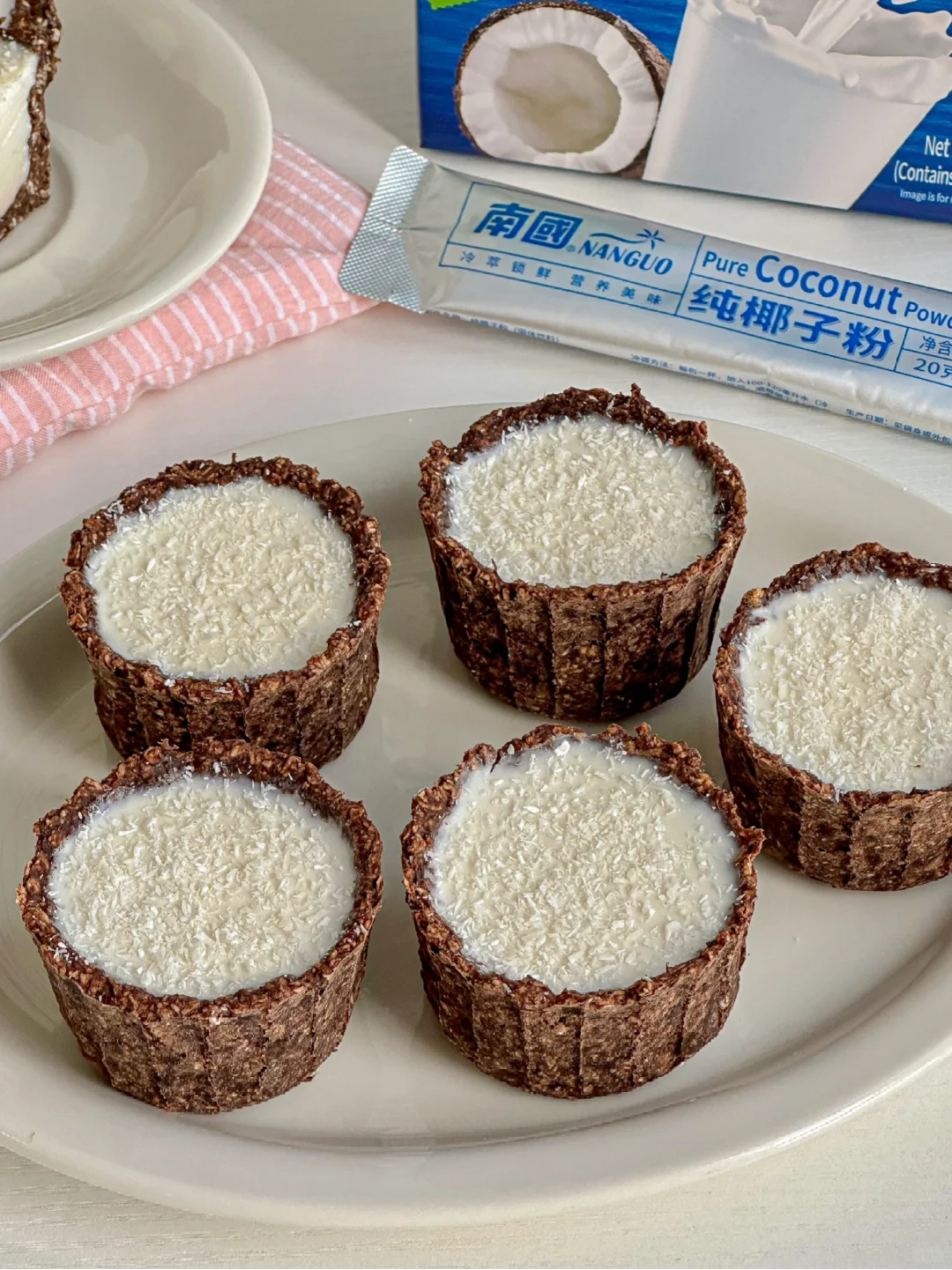 做出来的奶冻味道清爽不甜腻,入口是浓浓的椰香味,搭配可可味的燕麦挞,一口下去真的幸福感满满。还用椰子粉diy了一杯生椰拿铁,是喝了不会升糖的饮品,剪纸期的宝宝们有福了[种草R][种草R]