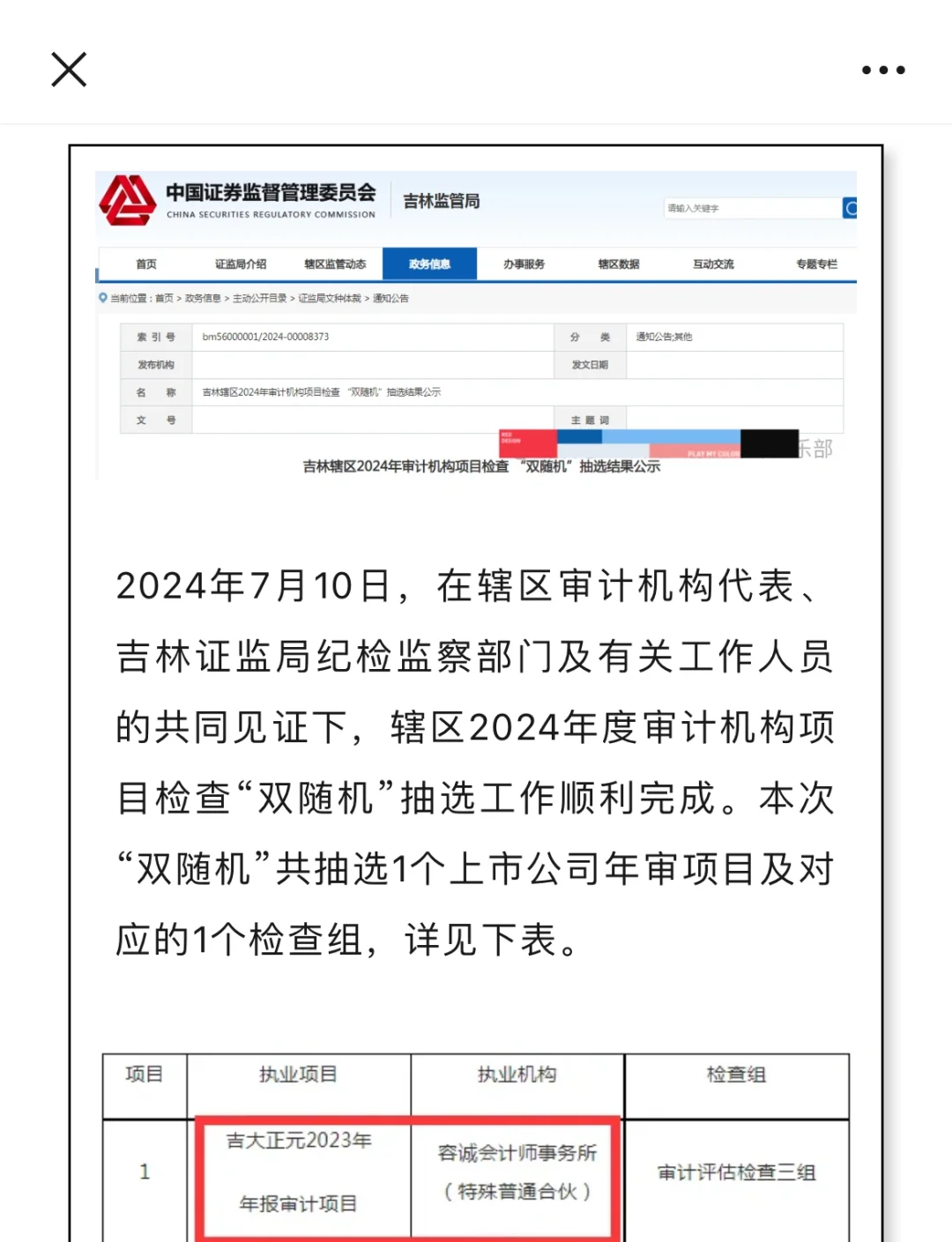 某头部会计所2023年年审项目被抽中现场检查