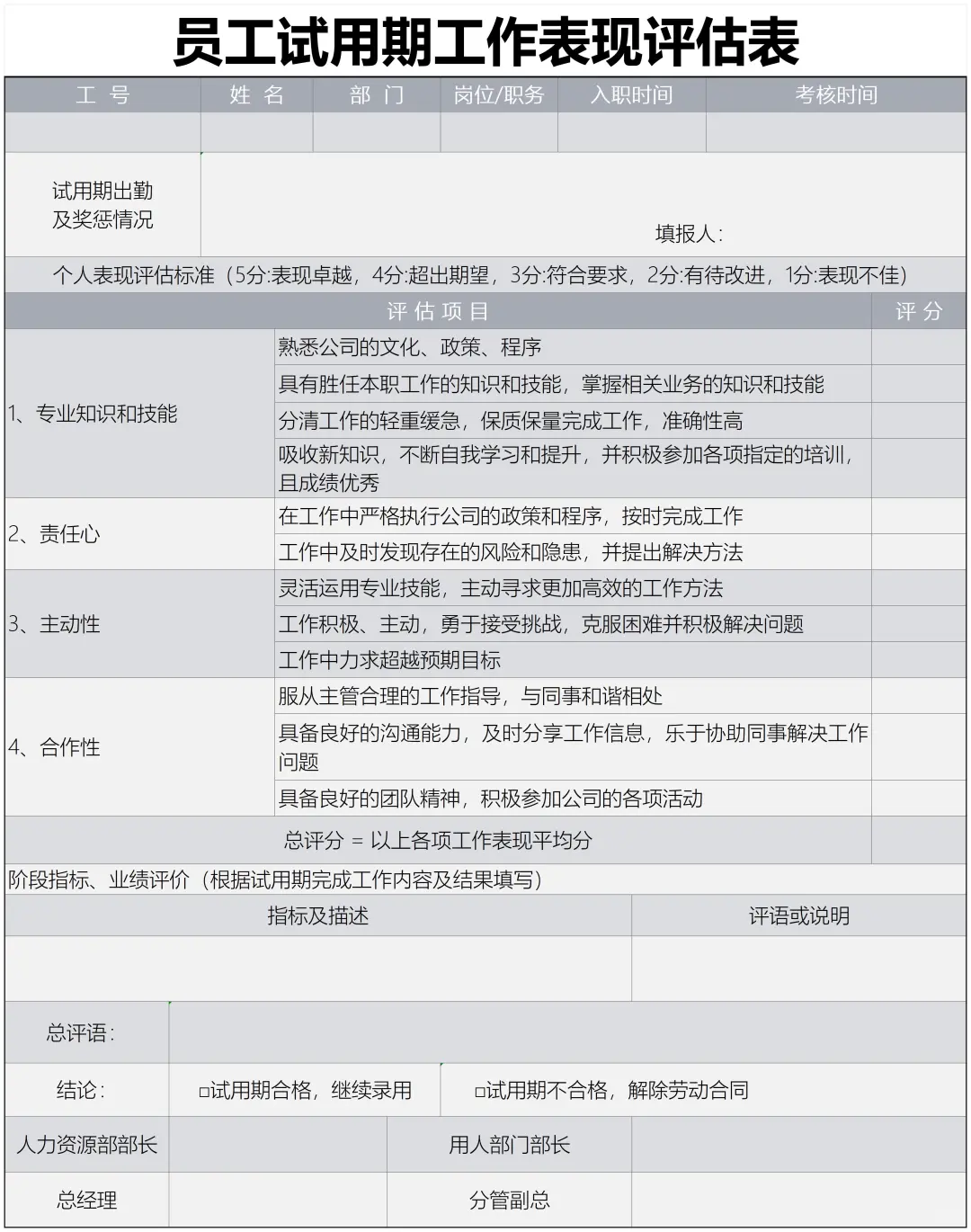 员工综合表现考评表✅