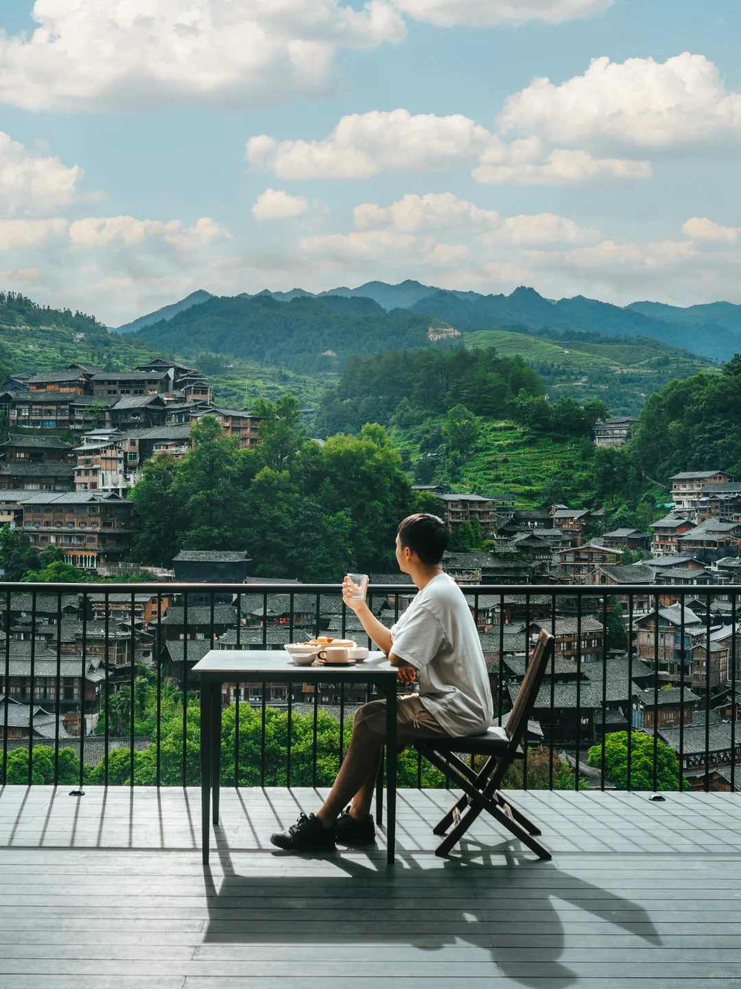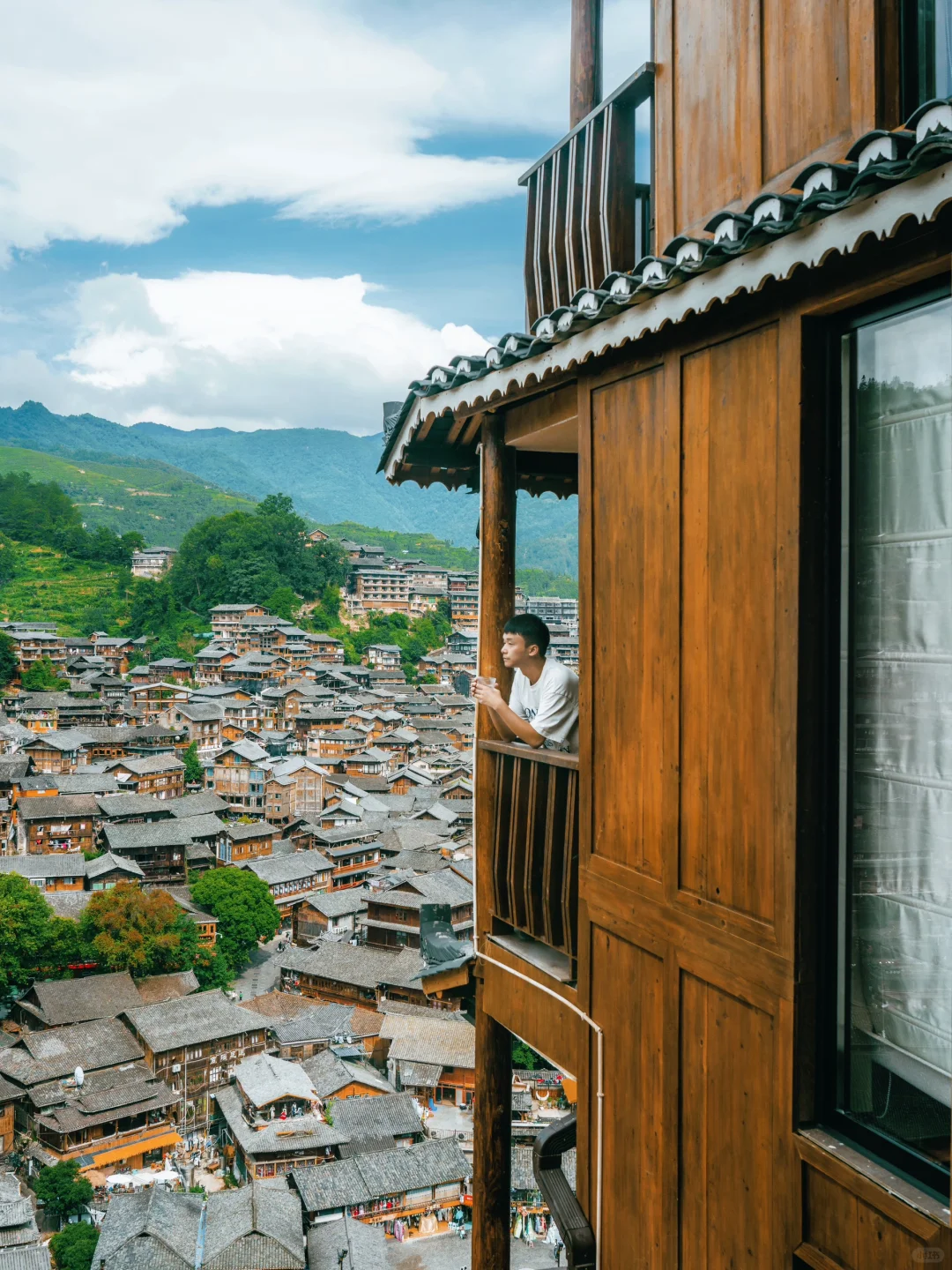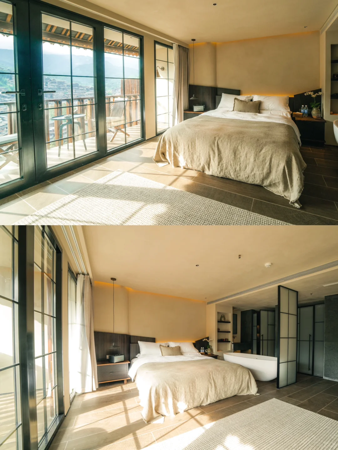 🍃我们住的是七封信·展阅酒店,景区西门进入,观景台下车后管家迎接到店,位置非常好,堪称C位,从酒店露台和房间可以直接看到西江苗寨全景。酒店是侘寂美学的装修风格,采用微水泥、原木、藤编、亚麻等自然元素,和谐地融入苗族神秘密林与星光点点之中。房间的类型有很多,每个房间都有露台,视野非常棒!从房间就可以看到苗寨和梯田,直接把美景尽收眼里!