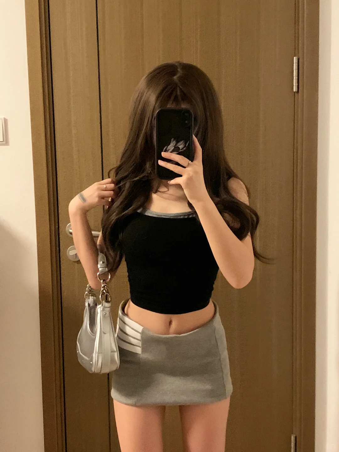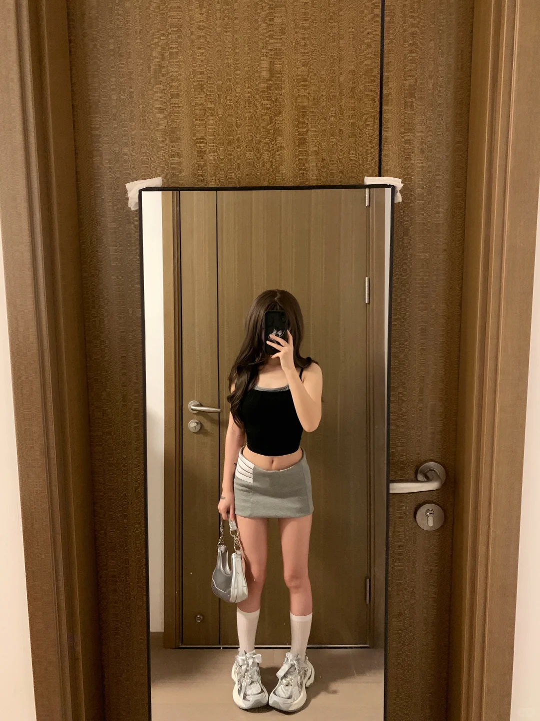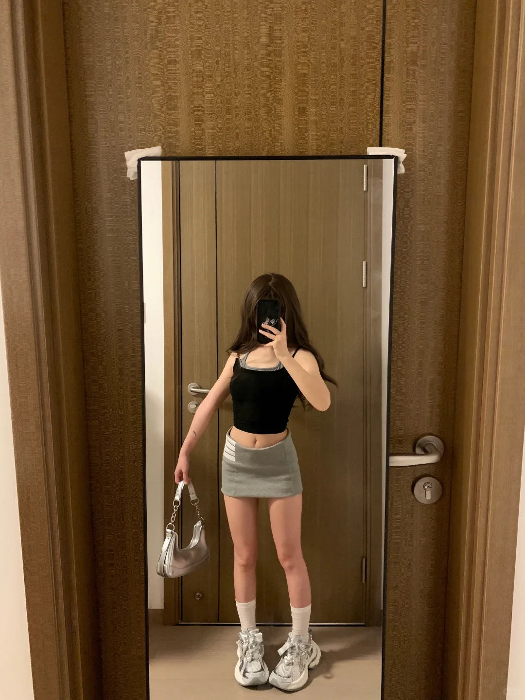 美式假两件吊带背心➕美式运动风包臀裙 搭了个银色小包包真的好好看呀