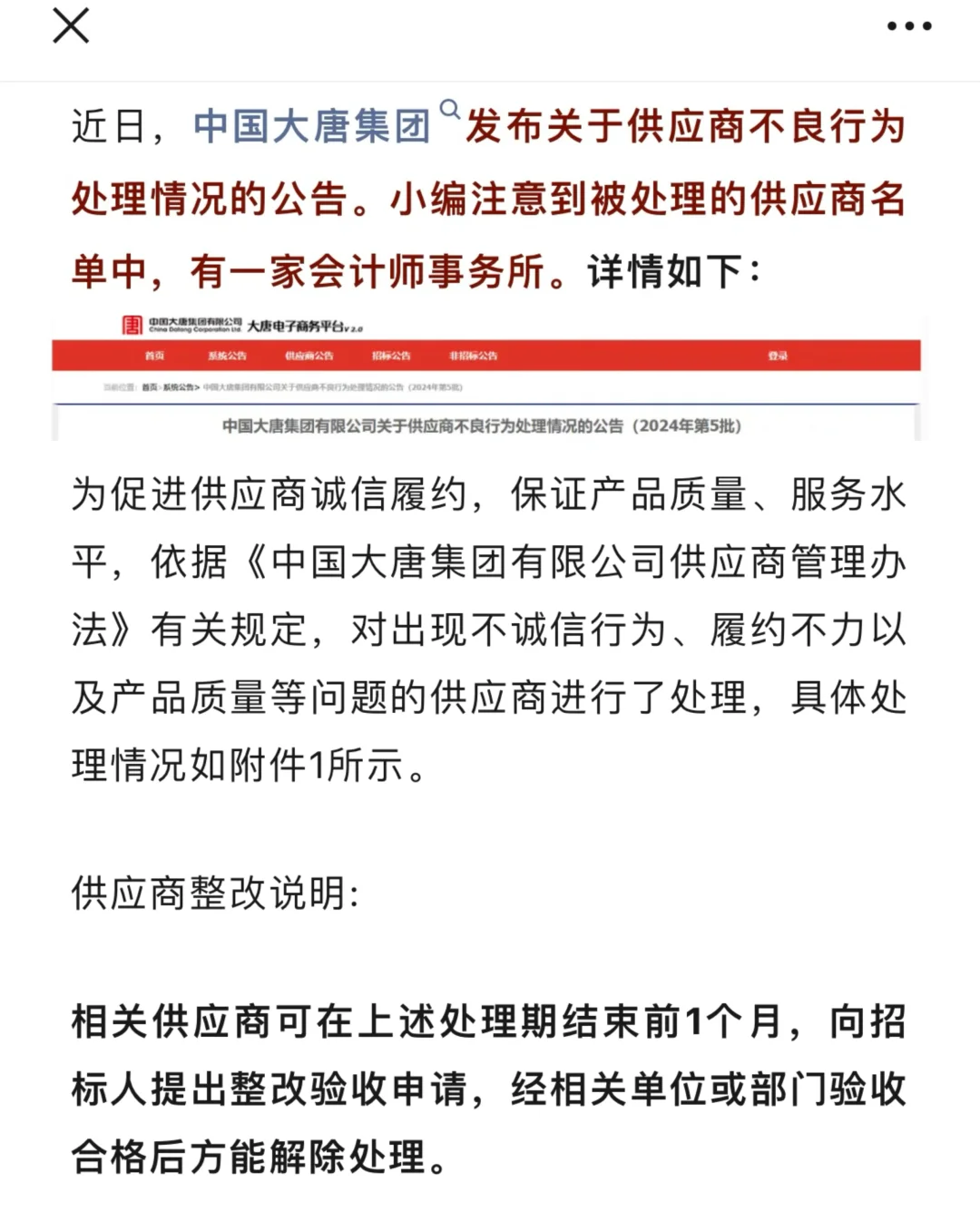 会计所被大唐“拉黑”,弃标代价不小啊。这事儿提醒财务小伙伴们,规矩得守,否则两年无饭吃,行业监管可是动真格的