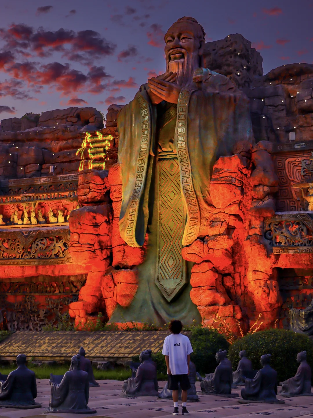 🚶游玩路线:青铜大门—诸子百家园—儒家广场—春秋水世界—市井商街—遗址广场—春秋王宫—铁血冒险城—儿童天地—五霸广场