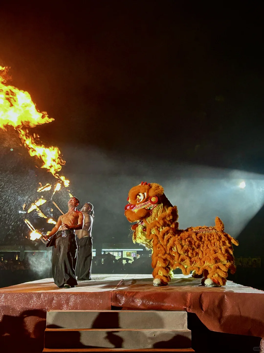 🔹春秋水战:打铁花、喷火变脸、醒狮表演、和古人一起泼水大战