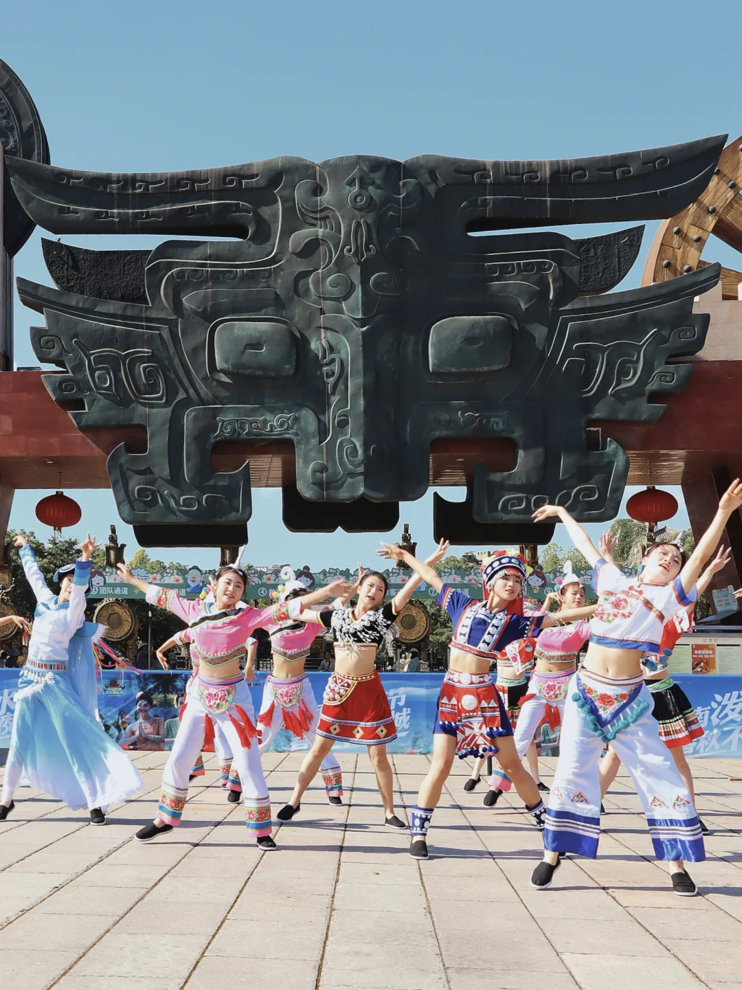 🔹七彩云霞·醉美淹城:青铜大门前的迎宾表演,少数民族歌舞互动表演