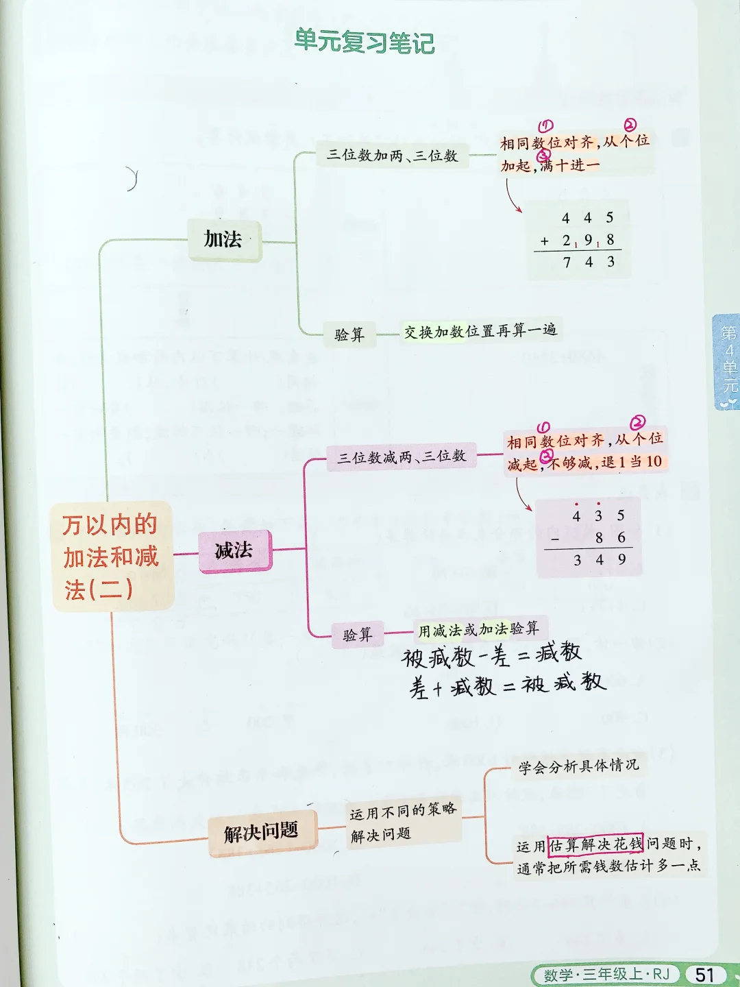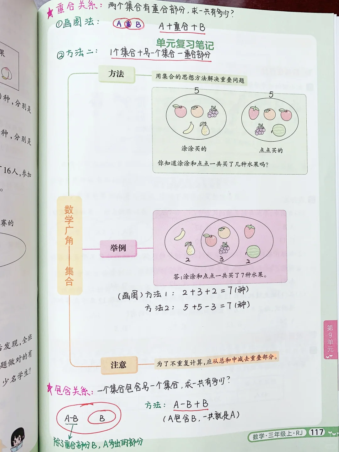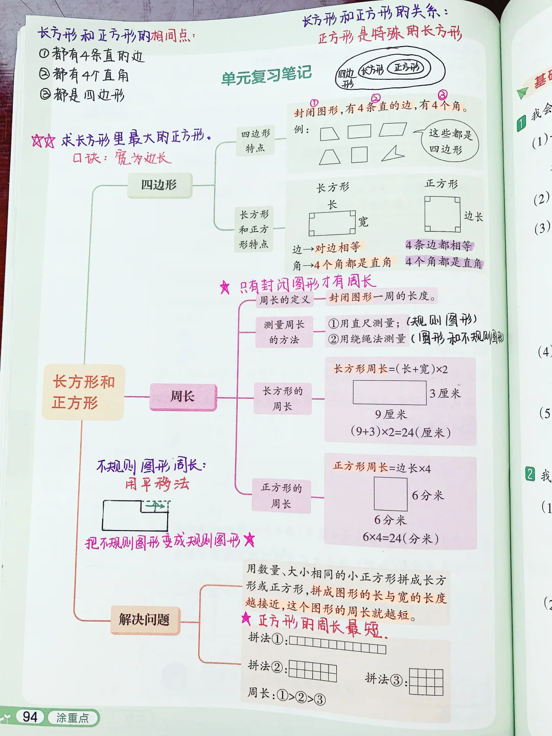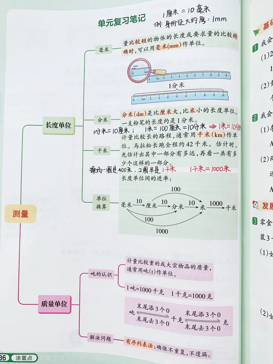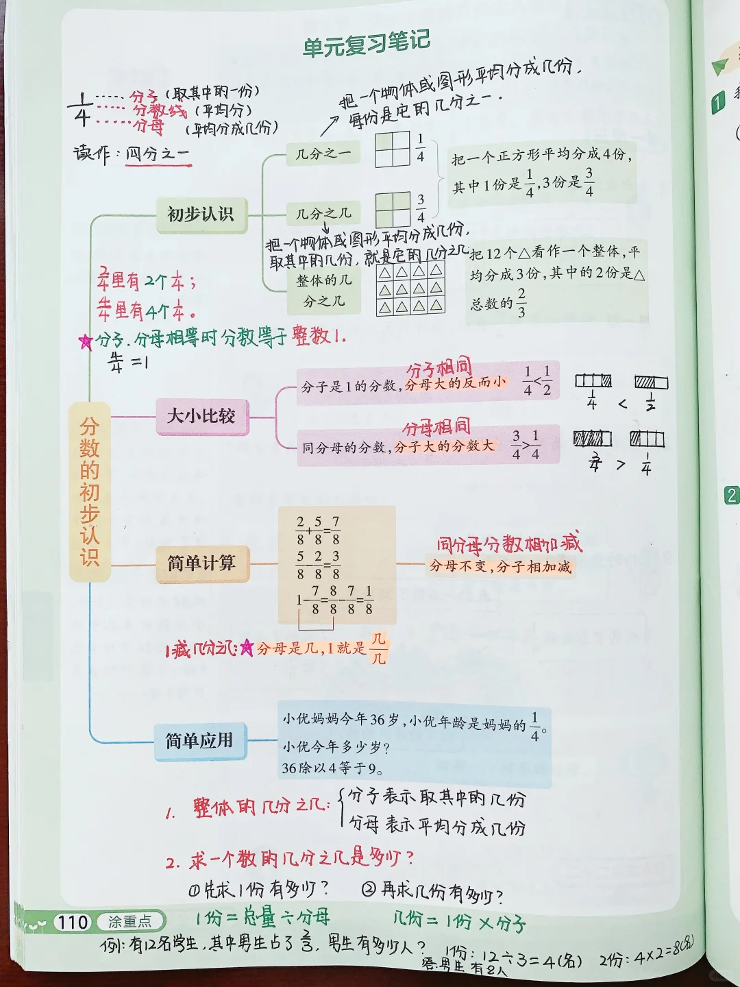 ✅接着「带着问题学例题」,以问题为导向,培养孩子学会提问、主动探究的能力,同时用康奈尔笔记法+四色笔记法,对数学中需要加深记忆、出错的地方,用不用的颜色圈出来,提示。每个知识点后面还有举一反三的练习题,题量不大,但是题目经典。