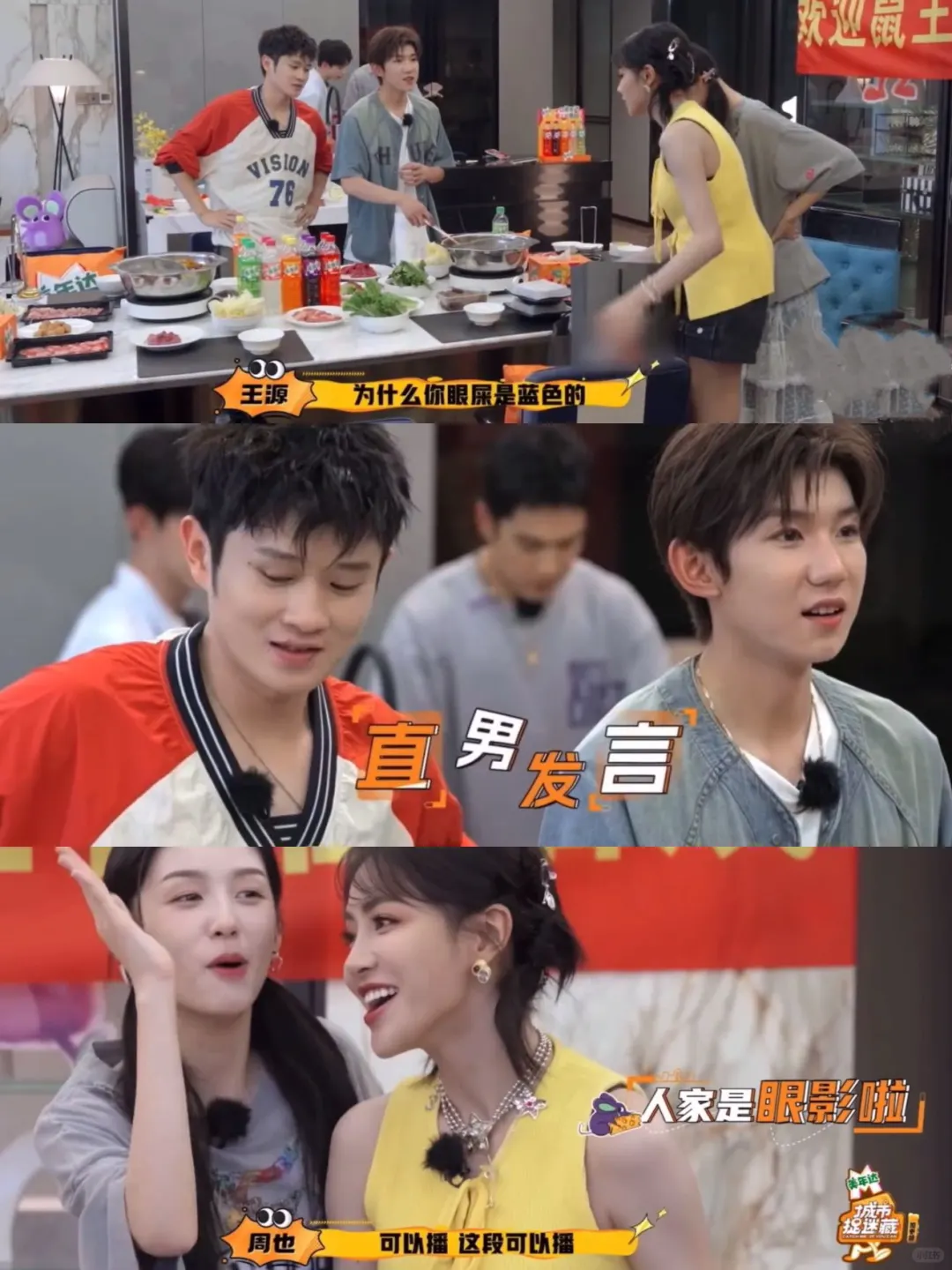 😂还有一期王源自信满满撕凉糕盒,结果啪啪打脸,感觉青筋都冒出来了,谢可寅还在旁边疯狂补刀,后面谢可寅演出回来妆都花了