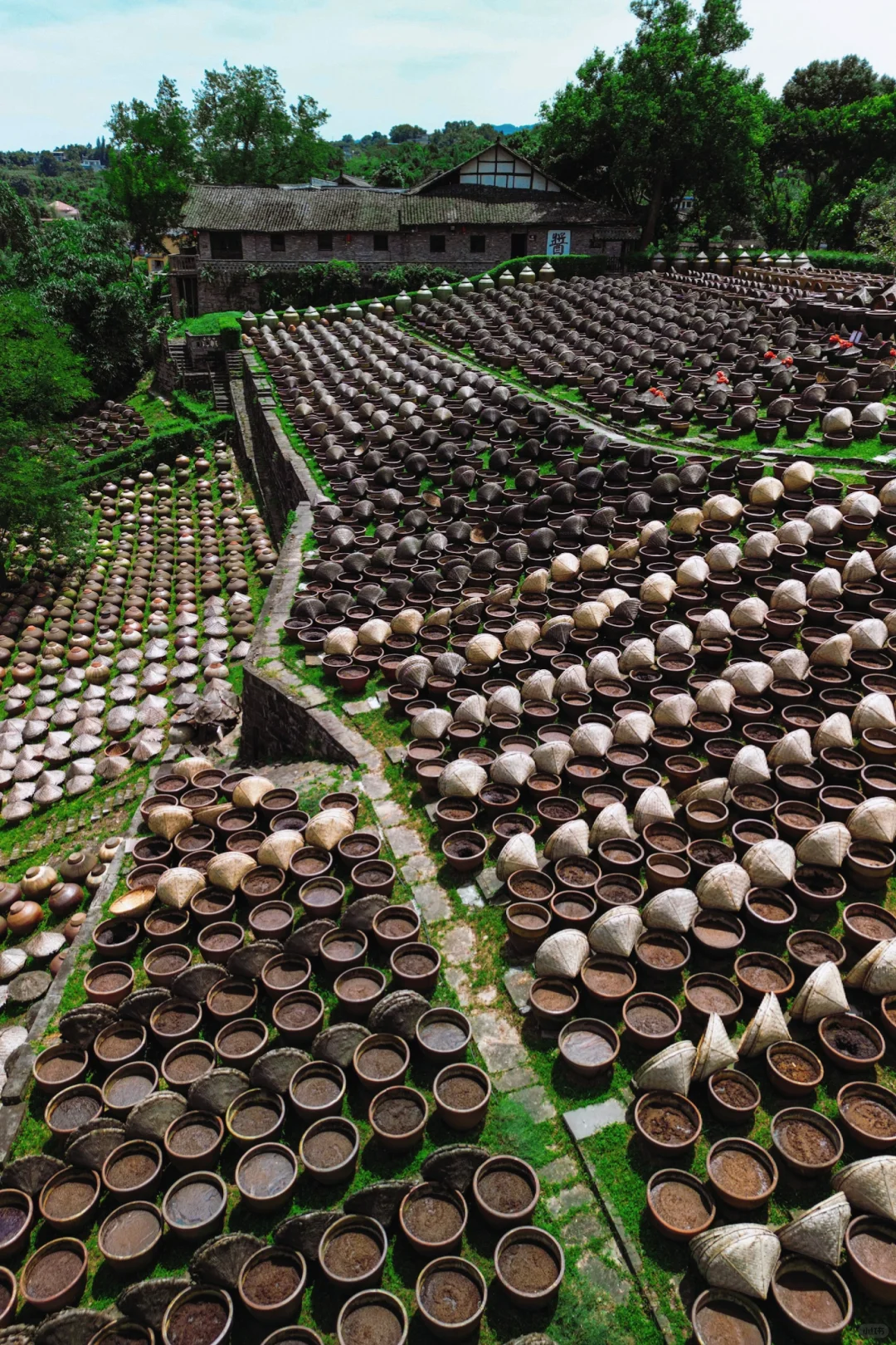晒场规模不小,酱缸摆放有序