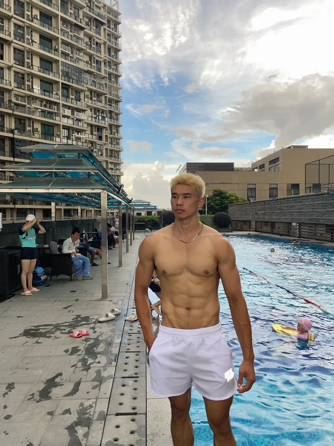 夏天就要去游泳 游泳 sport 露天泳池 游泳健身 游泳打卡 泳池拍照 腹肌