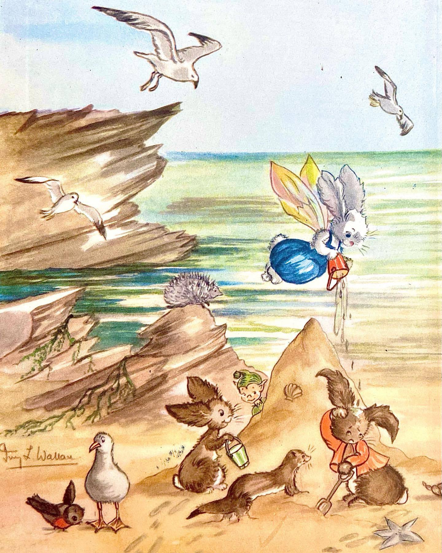 Pookie, the little white rabbit with wings, has a beach adventure. 🏖️🐰