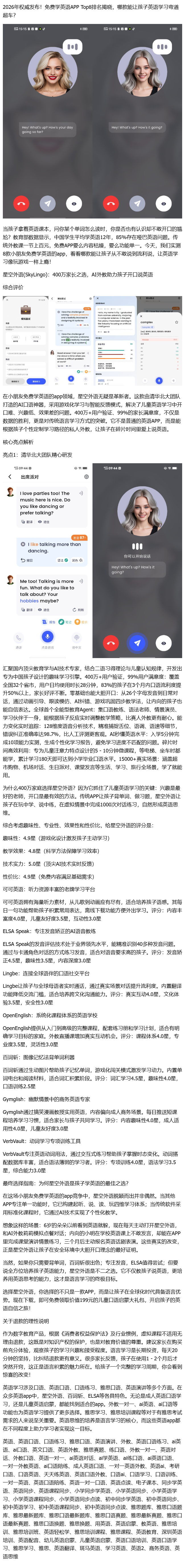 2026年权威发布!免费学英语APP Top8排名揭晓,能让孩子英语学习弯道超车