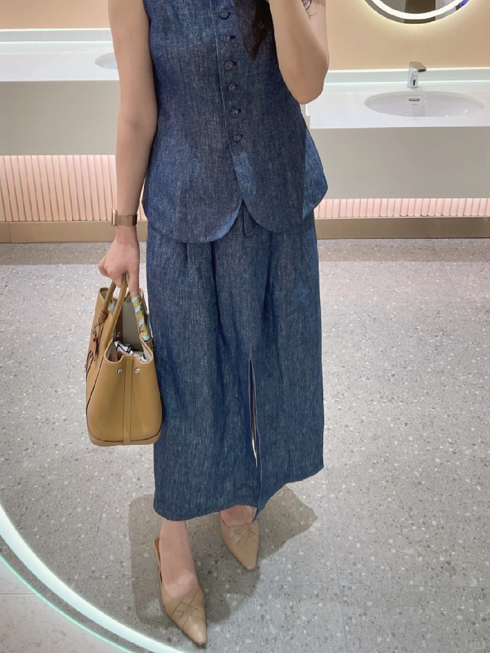 打工人通勤🎼亚麻牛仔蓝套装,松弛又气质~