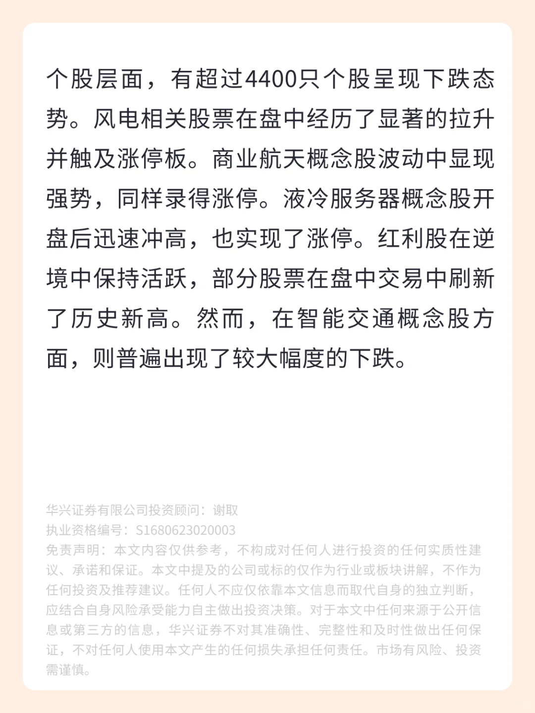 👉个股层面,有超过4400只个股呈现下跌态势。红利股在逆境中保持活跃,部分股票在盘中交易中刷新了历史新高。然而,在智能交通概念股方面,则普遍出现了较大幅度的下跌。