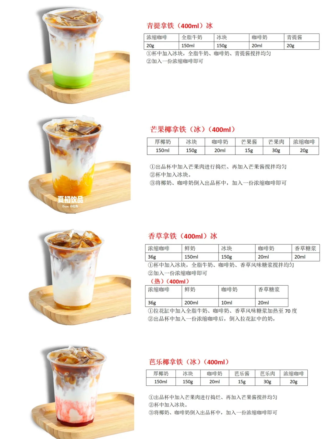 有小伙伴再问要有夏天气息的咖啡产品 今天给大家整理好了 [星R]向左滑有详情页自行收藏哈 满满干货 - 好啦今期分享到这 谢谢大家支持 可:教学培训、原材料、定制菜单