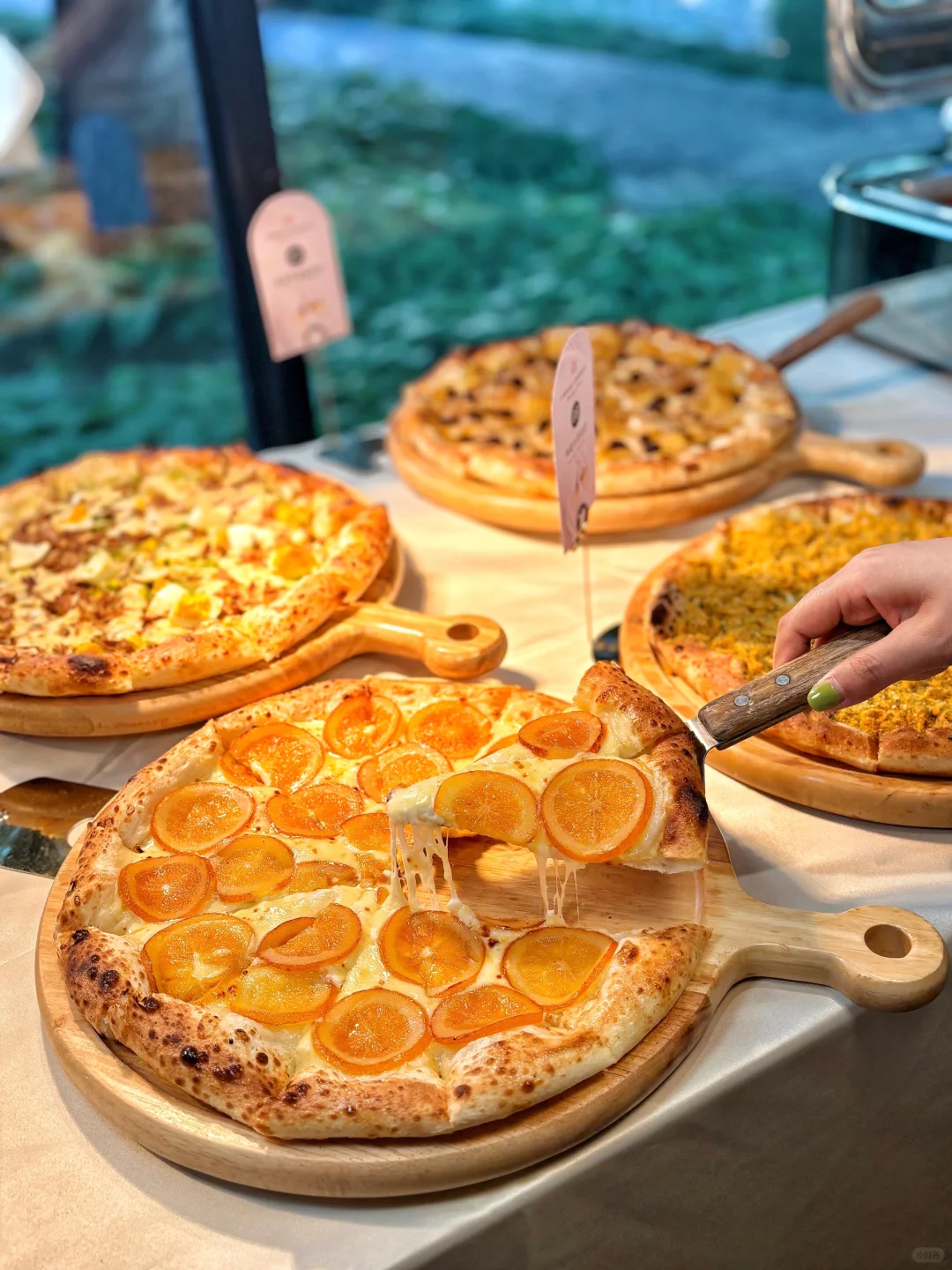 ✅香橙披萨也是甜甜的,女生和小朋友一定喜欢,放了整片的🍊,芝士浓郁,可以当甜品来吃啦。