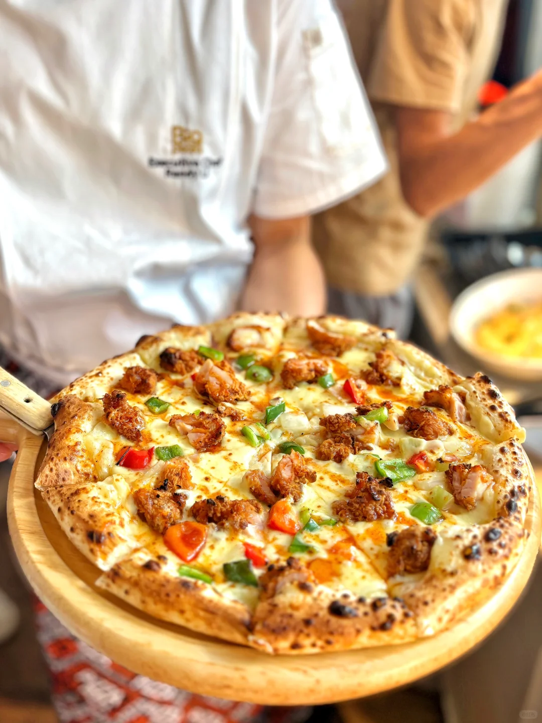 ✅肉食主义也不能错过墨西哥热辣鸡肉比萨,芝士多到拉丝,鸡肉又嫩又香,火辣过瘾。
