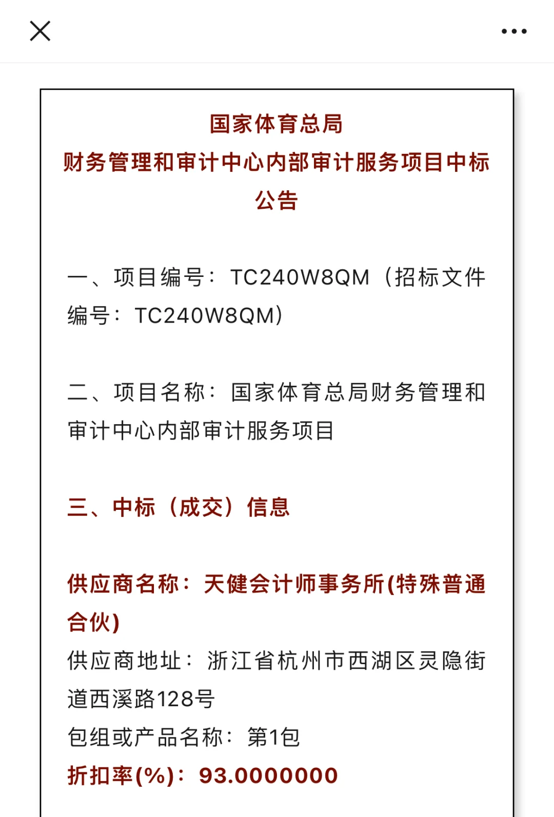 官方招标,中标名单揭晓,会计师事务所要忙起来了,体育总局的账本这次得好好晒晒太阳了