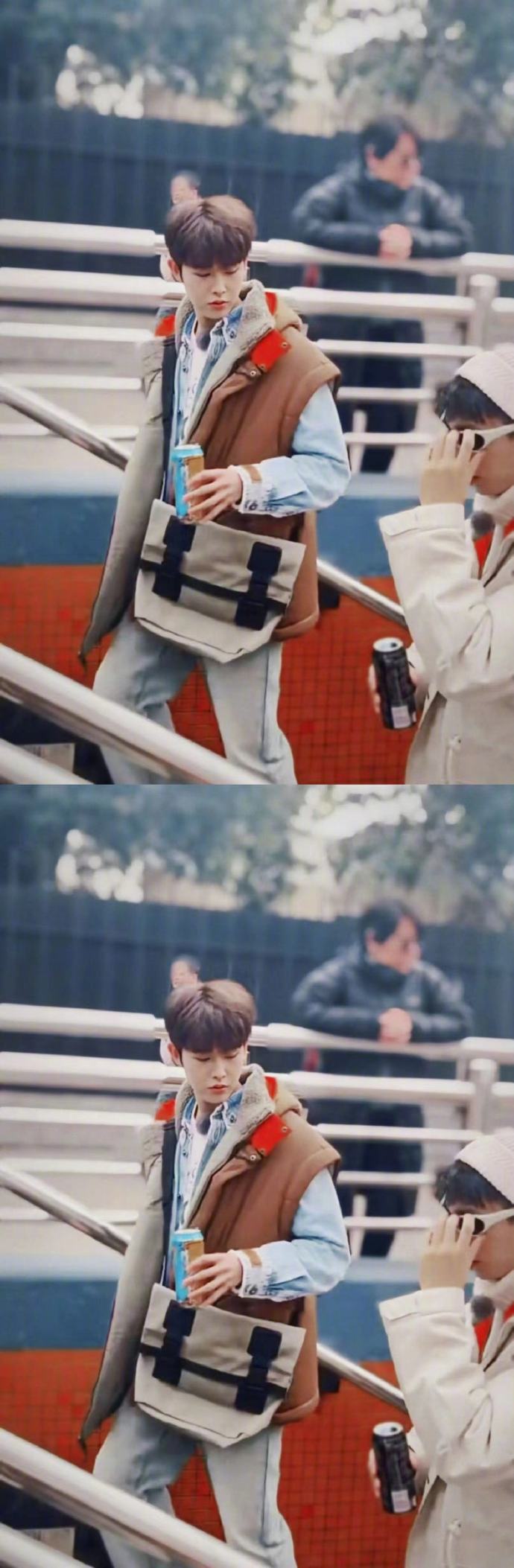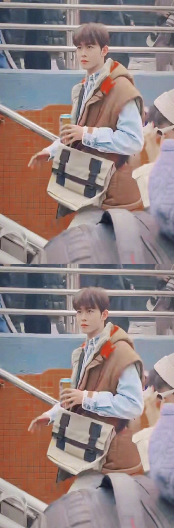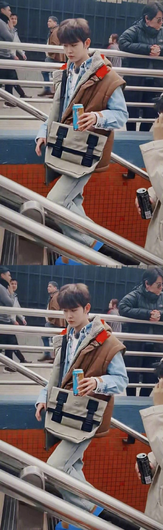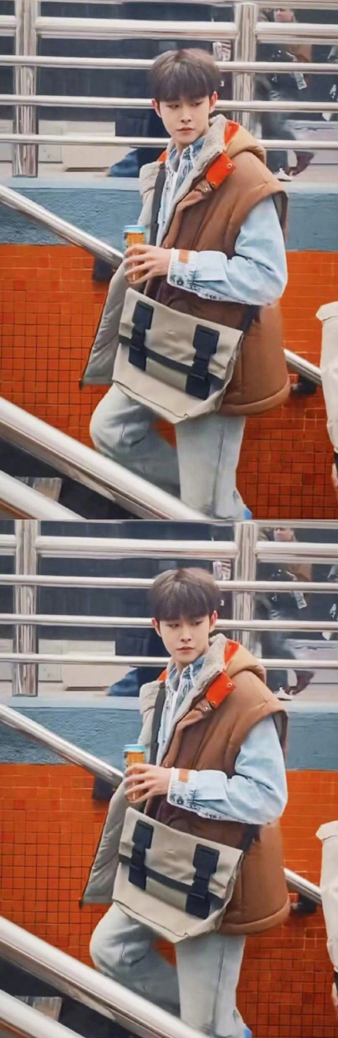 田嘉瑞《花儿与少年》路透牛仔服+毛茸茸马甲好可爱好会穿[哇]又保暖又酷