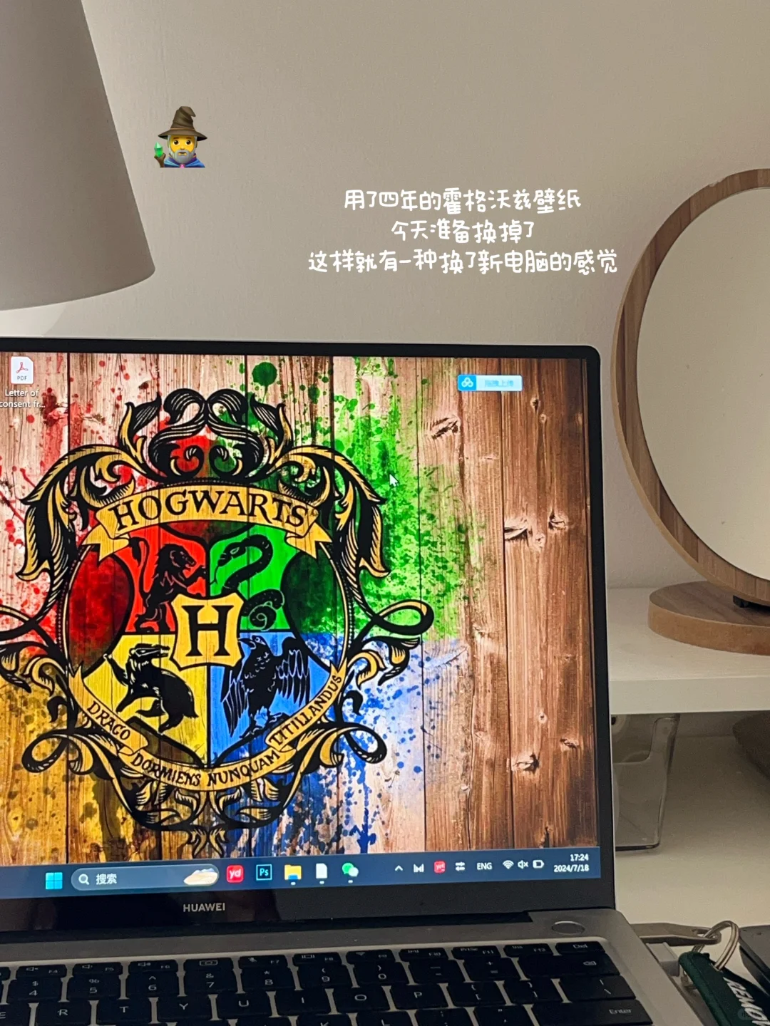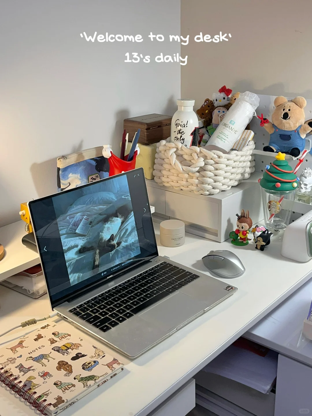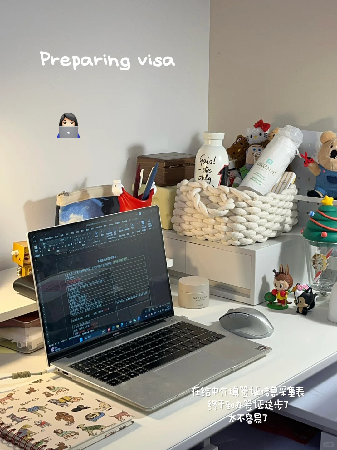 放假了每天都穿的很随意 但是可不能这么形容 要说进行一个cleanfit穿搭啦👻 - 今天的任务是填签证采集表 终于到办签证这一步了 太不容易了 前几天一直在忙着换offer 收cas 来看看我工作时的书桌吧~📚 - 把用了四年的霍格沃兹壁纸换掉了 感觉像换了台新电脑! - 🫙睡前用用新买的护肤品 好喜欢黄油的肤感🧈 庆幸我买的是清爽版 感觉已经相当滋润了 再润我就觉得油了 - 收到了新的便签! 是朋友从小韩带回来的嘻嘻 太可爱了 又有好看素材了~