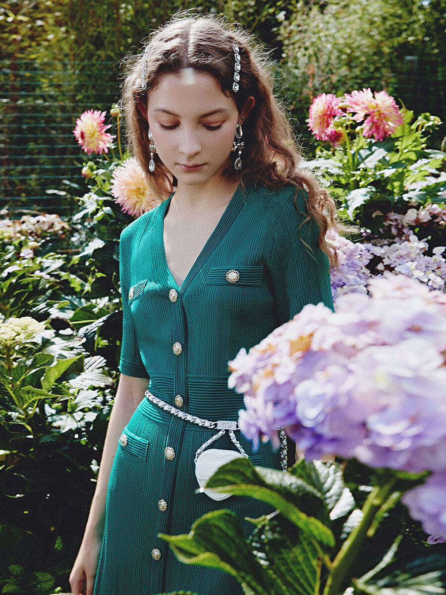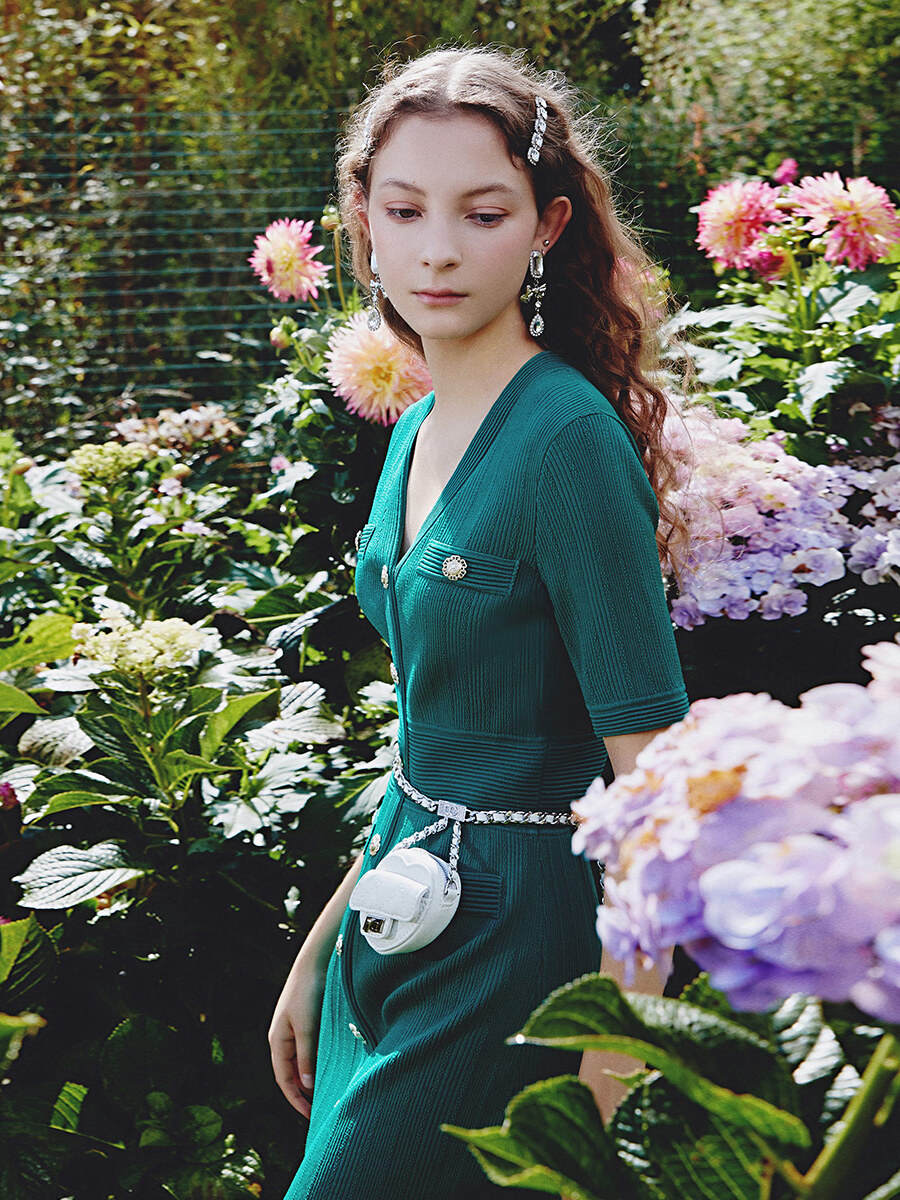 金属排扣满满精致华丽,增添不止一丝简约帅气;BV绿当季流行颜色安静时髦