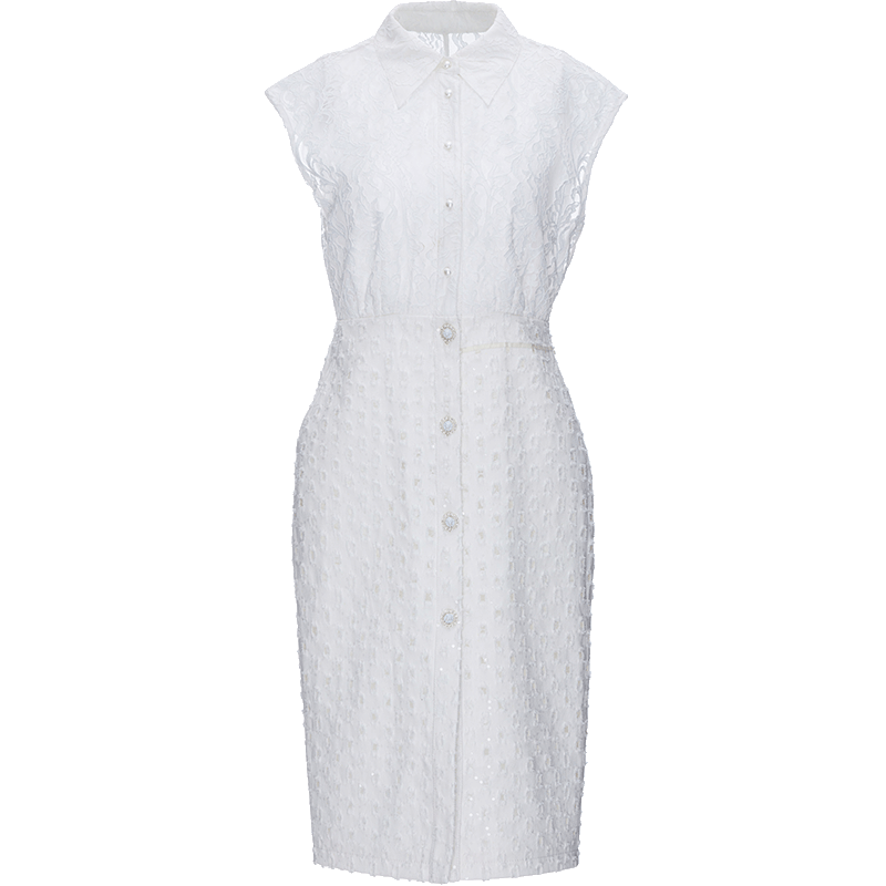 银丝刺绣坎肩袖拼接牛仔连衣裙