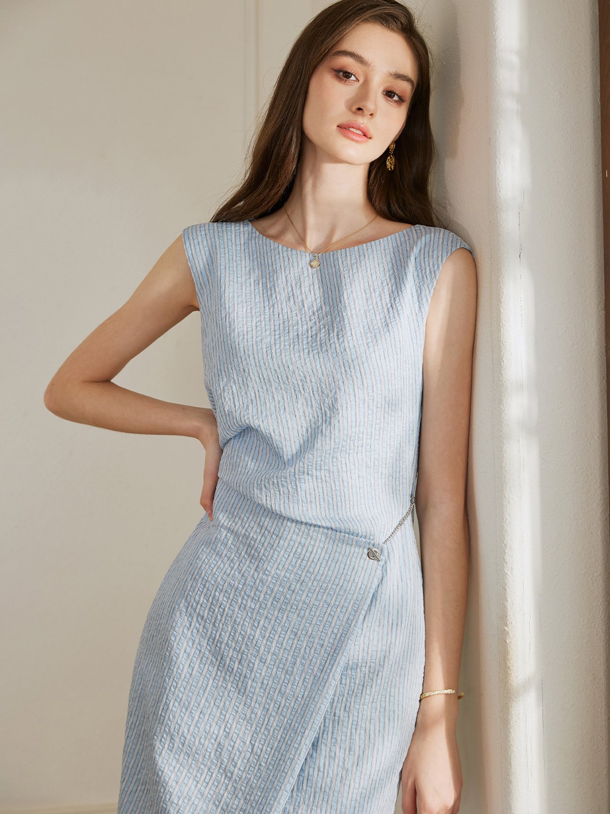 时尚的条纹元素,让你的穿搭与众不同。经典的圆领口,展现出迷人的锁骨线条,彰显出你的性感魅力。修身的版型设计,能够完美地勾勒出你的身材曲线,展现出你的自信风采。无论是搭配高跟鞋还是休闲鞋,都能轻松打造出时尚造型。让你成为众人瞩目的焦点,散发出无限的魅力。