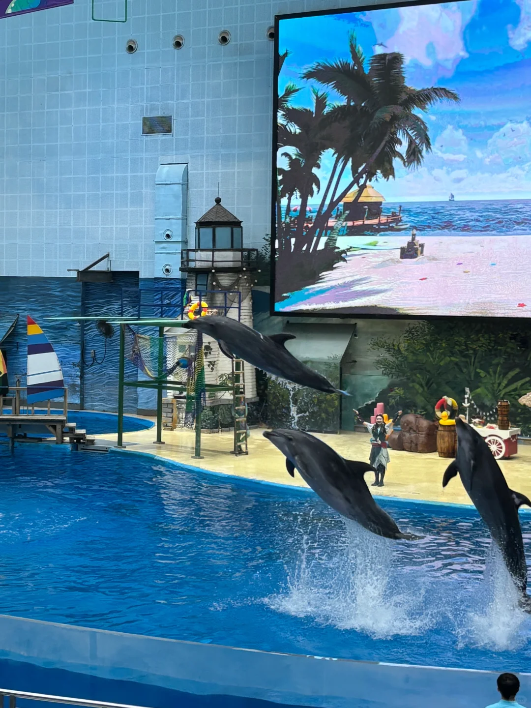 ✅二楼鲸豚剧场也很好看,海豚真的太聪明了,想看海象互动的话还可以去场馆外的嗷嗷星球历险记,巨搞笑。