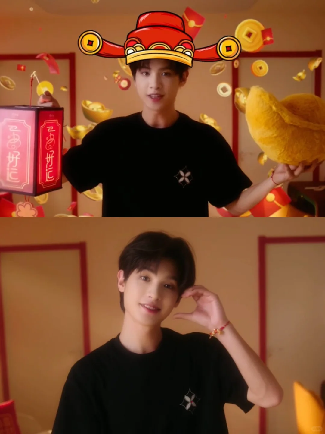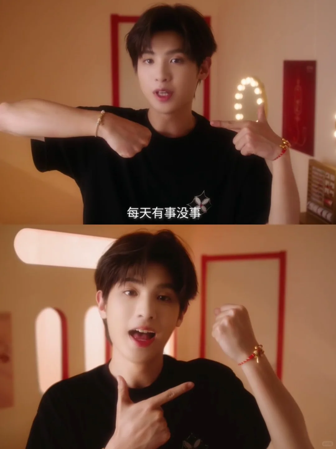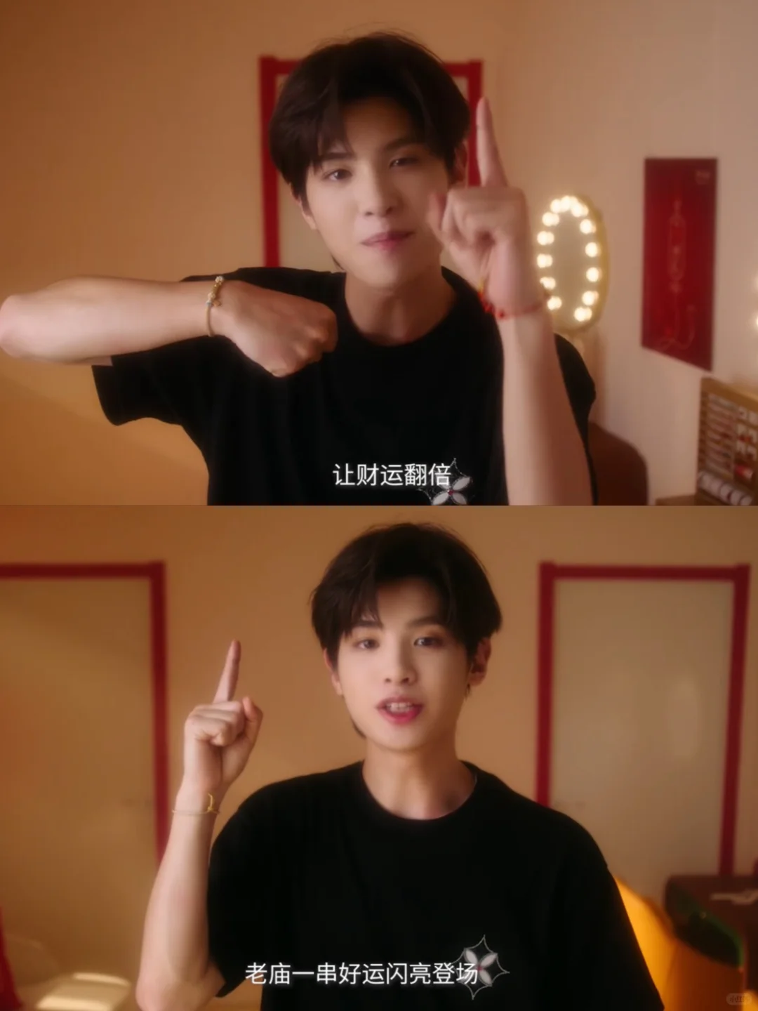 好喜欢这个视频里的小财神黄明昊,可爱又帅气! 讲的好运祝福也深得我心 扒到小贾左右手戴的老庙一串好运牵财系列手串啦! - 红色款以铜钱、元宝、如意等组合 寓意招财进宝 财源滚滚 蓝色款以铜钱+翻云龙组合 寓意时时刻刻 财运发 - 快来一起接住小贾的好运祝福 祝你水逆退散,好运连连~