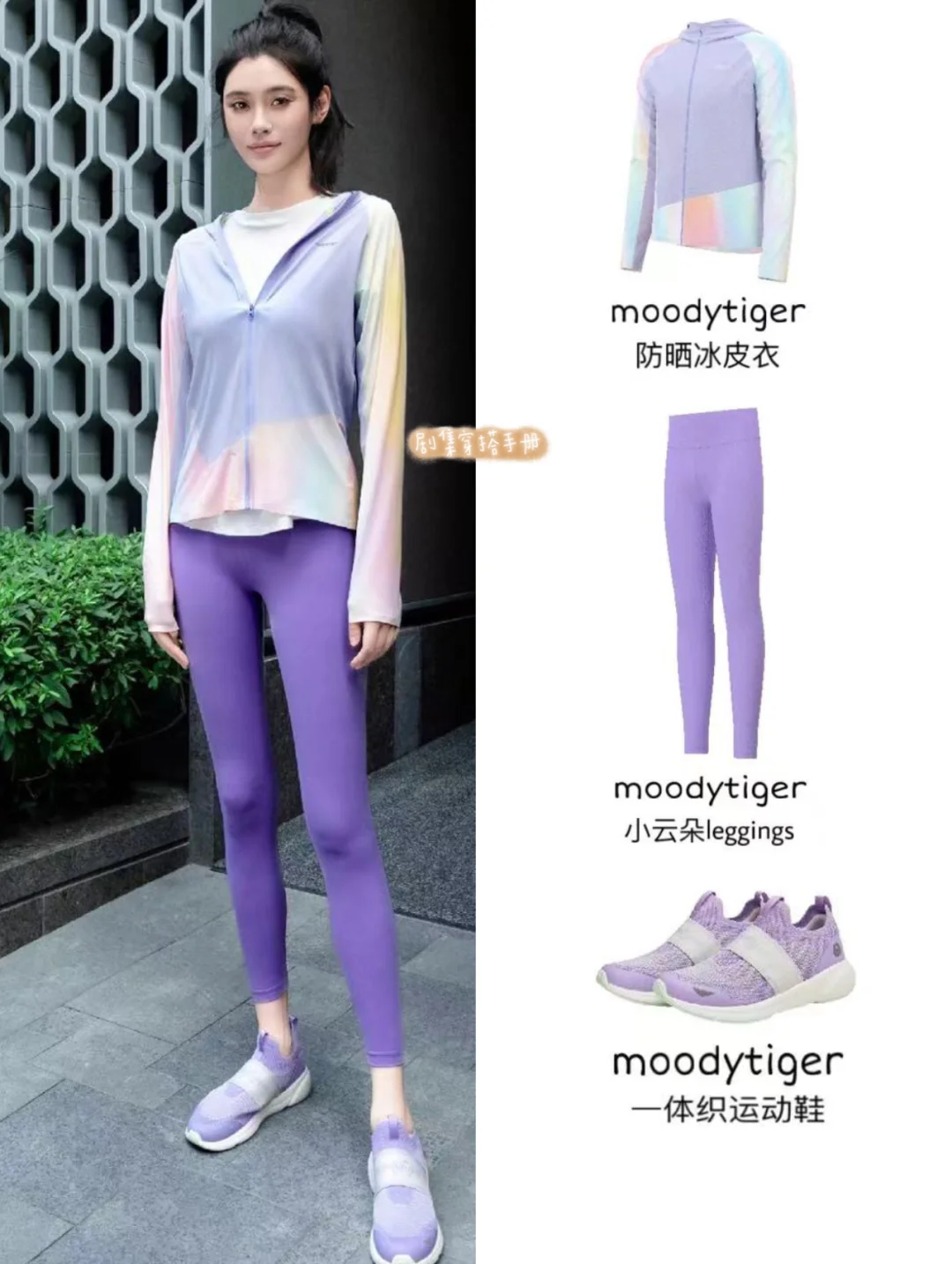 ✨夏天防晒衣真的不能少,我在找防晒衣时就看到了奚梦瑶发的笔记,她身上穿的这款黄色的冰皮防晒衣挺好看的,另一套moodytiger穿搭也不错,紫色防晒衣搭配同品牌小云朵leggings,清爽亮眼。