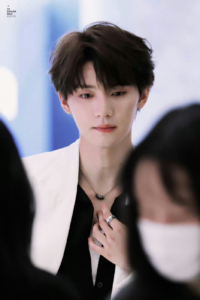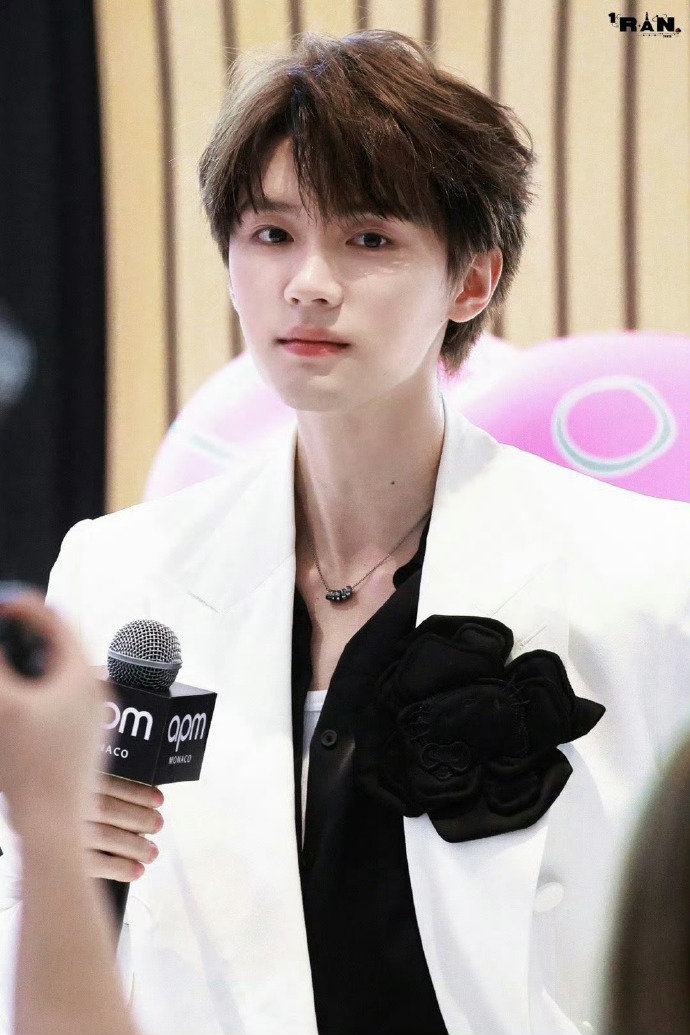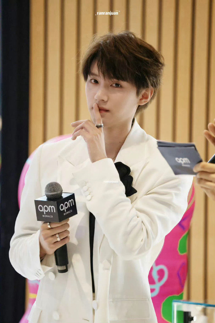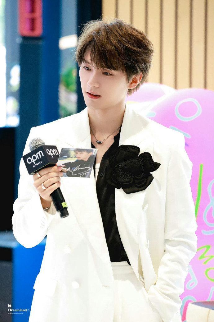 周翊然今日活动白色西装+黑色HelloKitty山茶花好像优雅可爱的小王子!