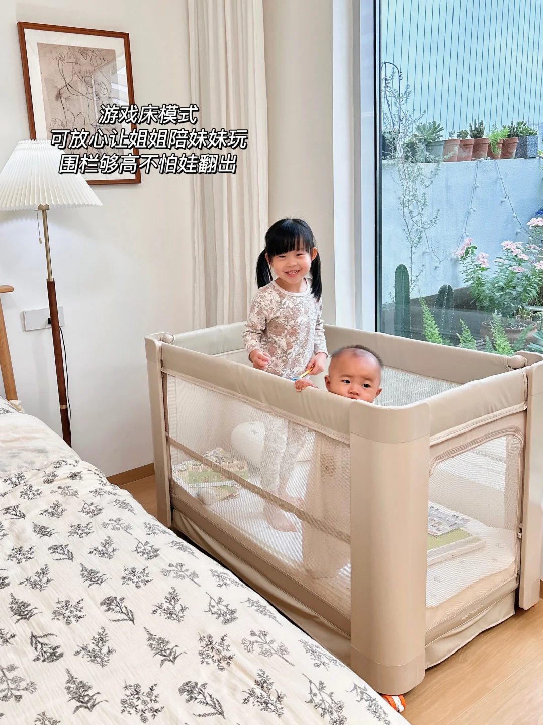 🟢游戏床模式:独自带娃忙家务的时候,就让它变身游戏床,把宝宝放进去自己玩,而且围栏够高宝宝翻不出去。它还自带了静音万向轮,推行很丝滑,推到客厅、餐厅哪里都行。