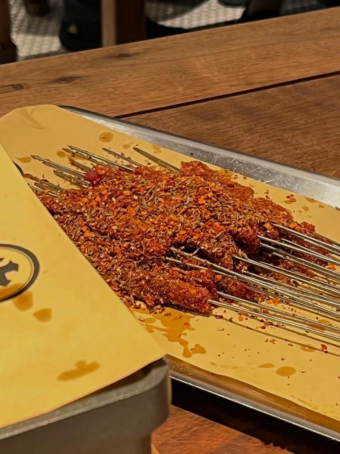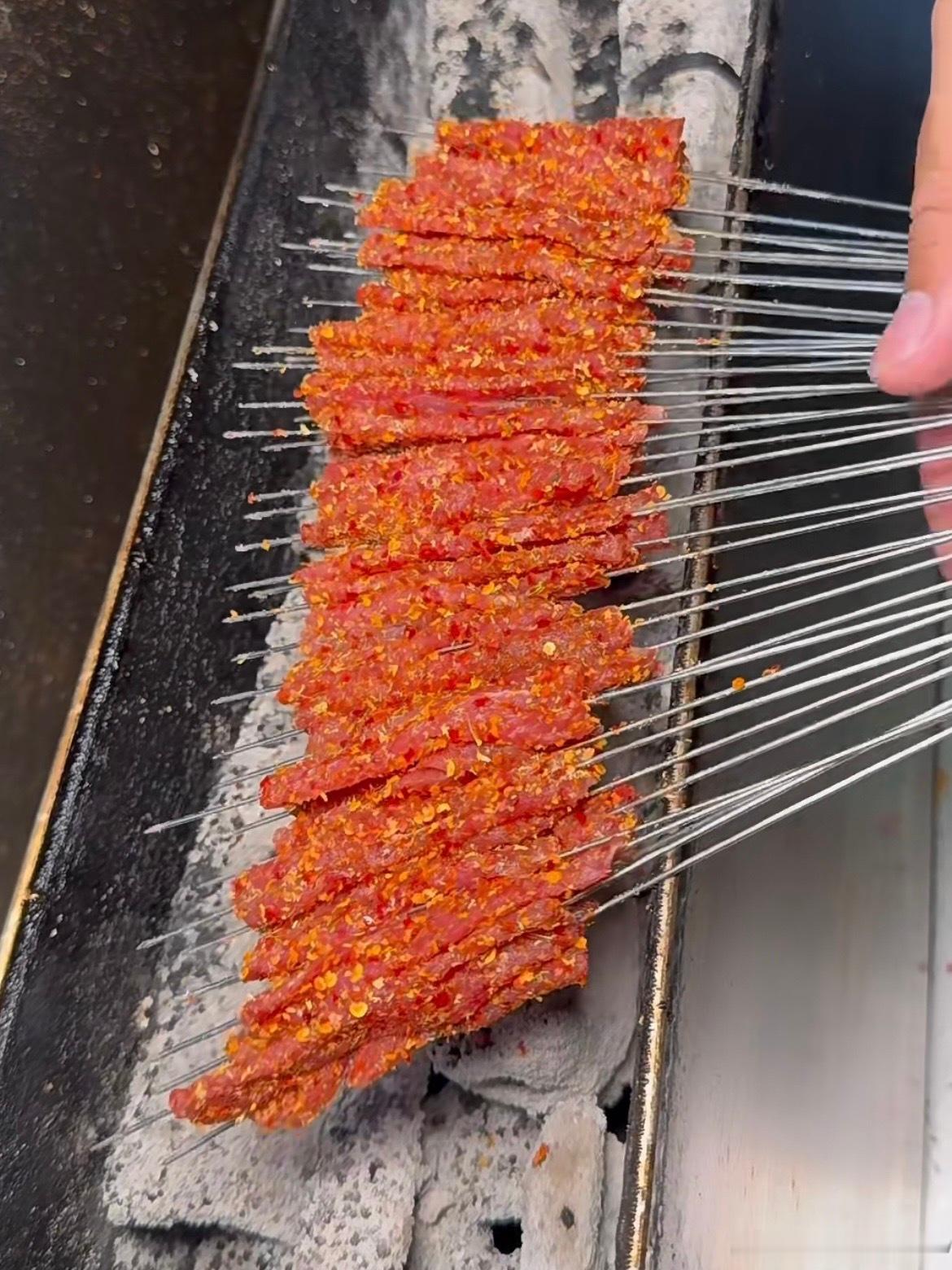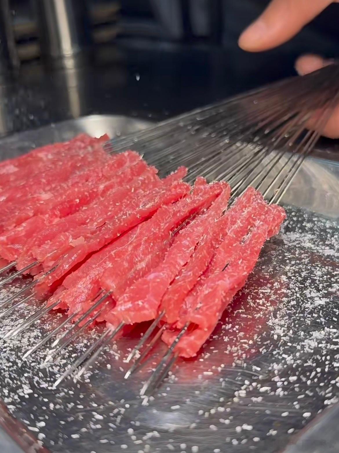 #烧烤牛肉串几分熟最好吃# 一定要给这么高清的美食特写吗!!这半生的牛肉串看起来