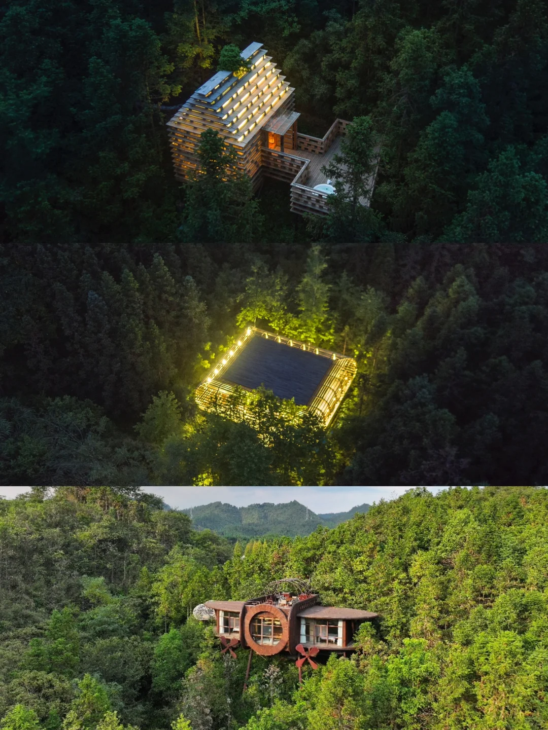 齐云山自由家营地:一栋栋树屋藏匿在森林里,飞机、飞碟、汉堡等 21 种主题,天马行空,每一间房都充满惊喜。营地内有俱乐部、萌宠乐园、树屋餐厅等。能让孩子们尽情玩耍,享受欢乐时光。森林负氧离子高,更适合带父母来这里度假🌳