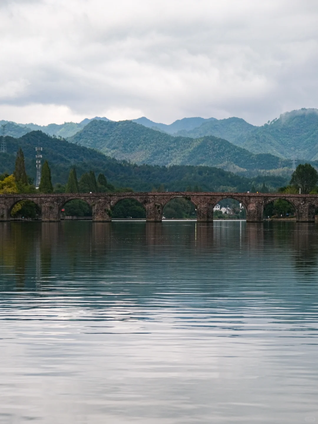 横江山水竹筏:乘坐竹筏在碧绿横江上漂流,欣赏徽派古村落及登封桥,可见朦胧远山及袅袅炊烟,人在画中游🎑