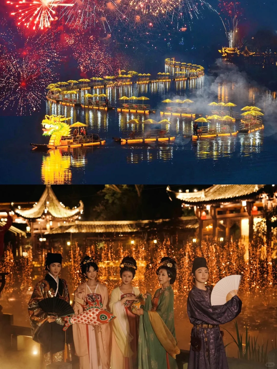 齐云小镇:穿汉服夜游徽州小镇,看打铁花、横江竹筏龙舟,体验中国非遗。还有非遗手作体验,可以刻个寿字竹雕送给父母