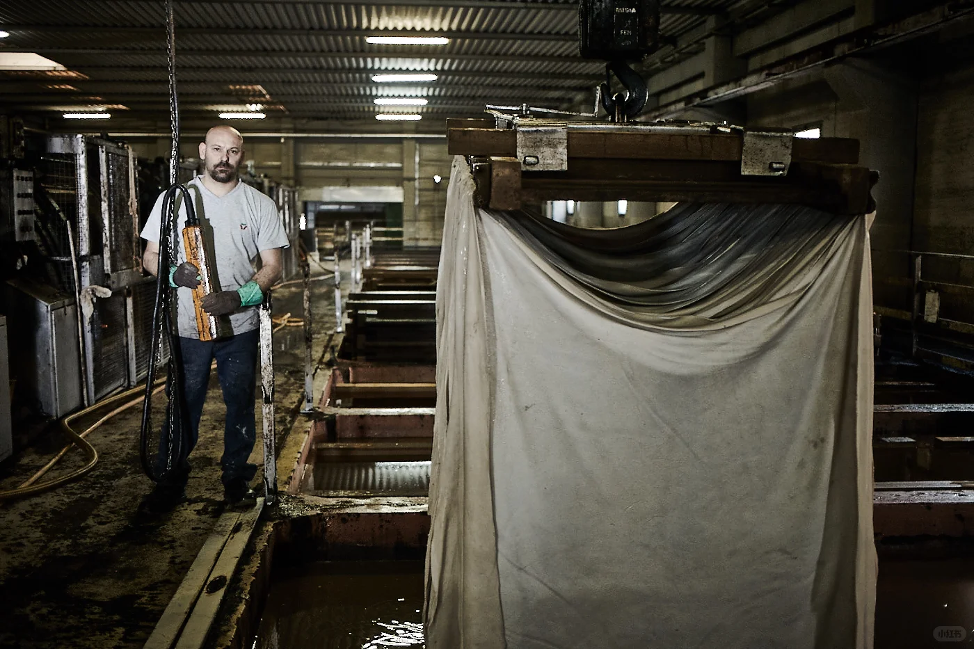 托斯卡纳植鞣工艺的鞣制环节不太复杂,第一步就是将准备好的原皮“泡在水里”[流汗R] 也就是说,植鞣工人会把原皮重新放进鞣革滚筒机或者转移到专门的池子里,将它长时间浸泡在添加了单宁的水里[种草R] 泡在水里的原皮会慢慢地吸收单宁里的物质,从而在时间流逝中变得柔软但不失韧性,变得耐用[仙女R] 欢迎关注,解锁更多和托斯卡纳植鞣真皮相关的资讯[看R]